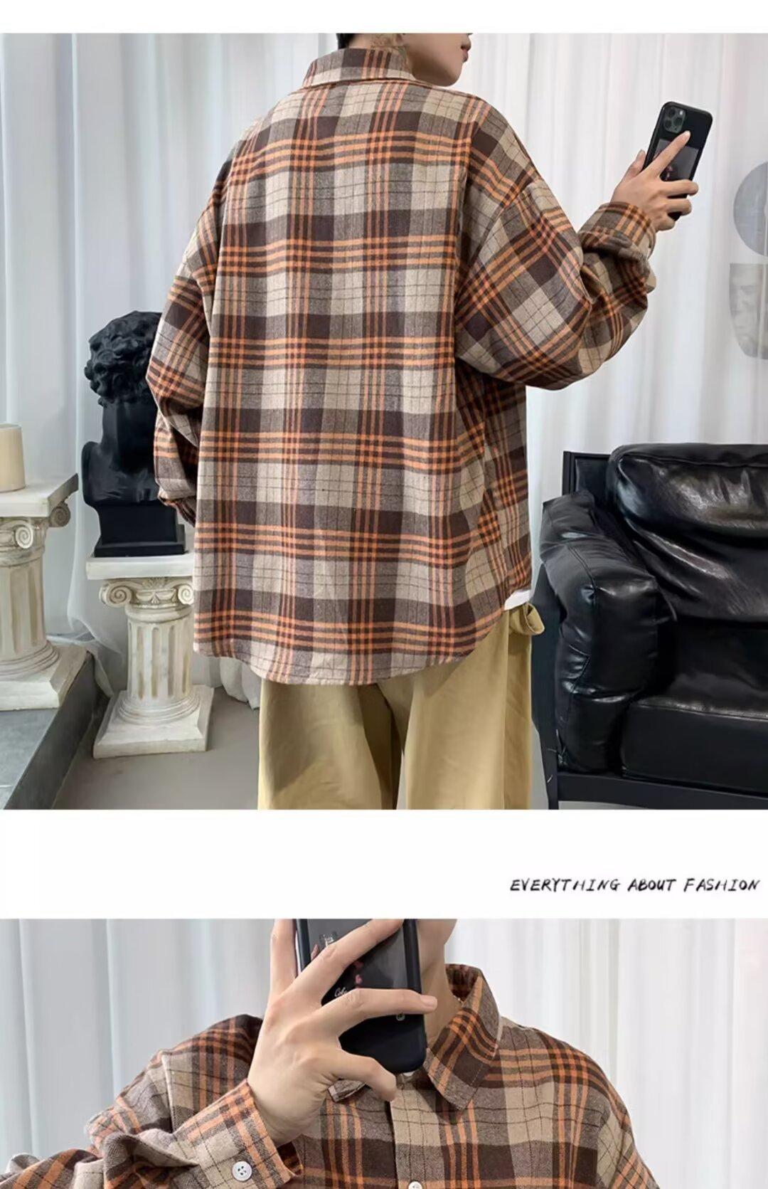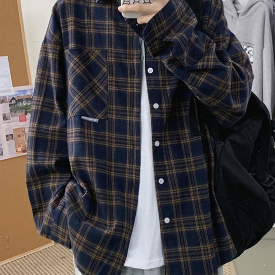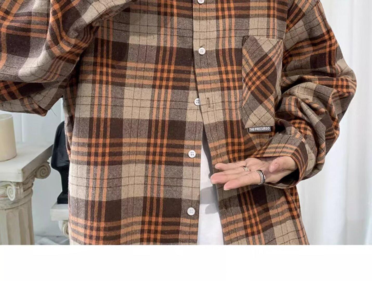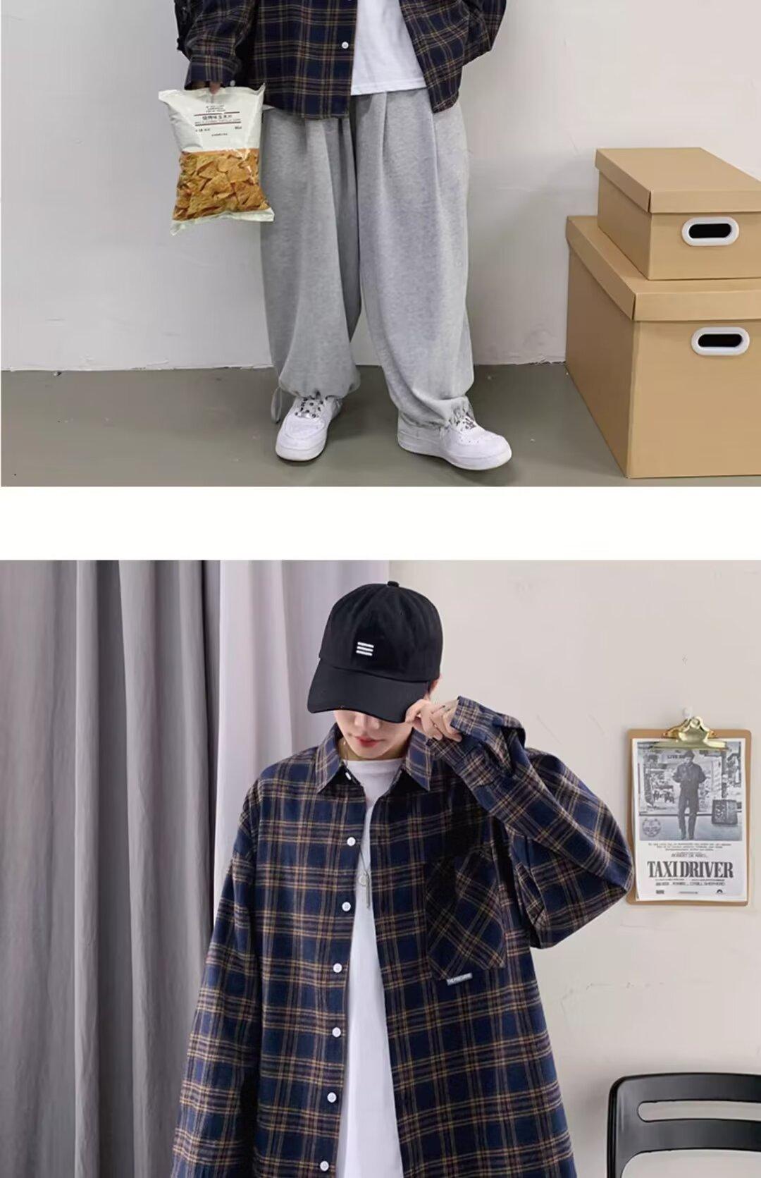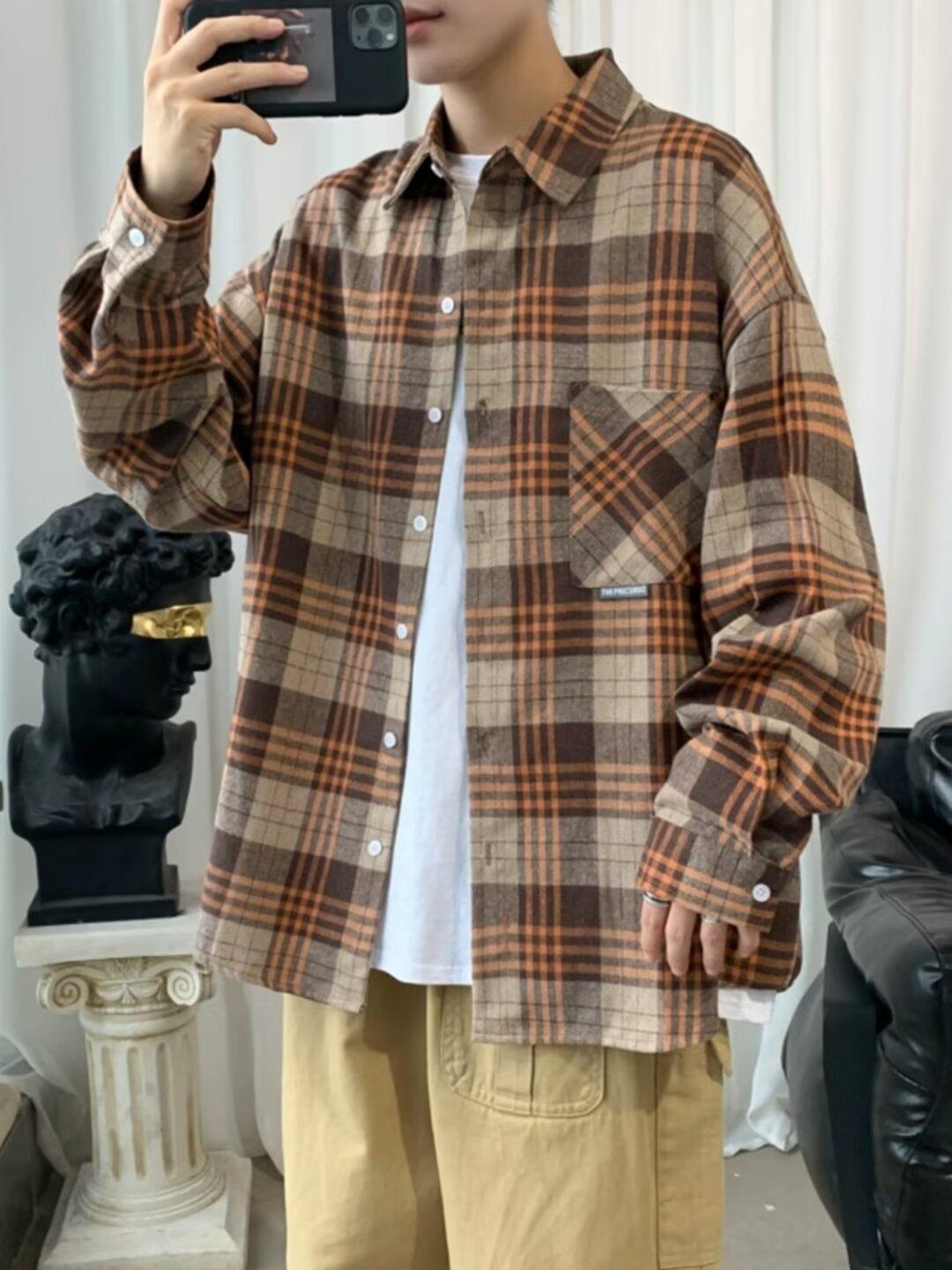 Camisa de manga larga a cuadros para hombre, nueva, holgada, estilo coreano, de moda, estilo retro, informal, para estudiantes, para primavera y otoño
