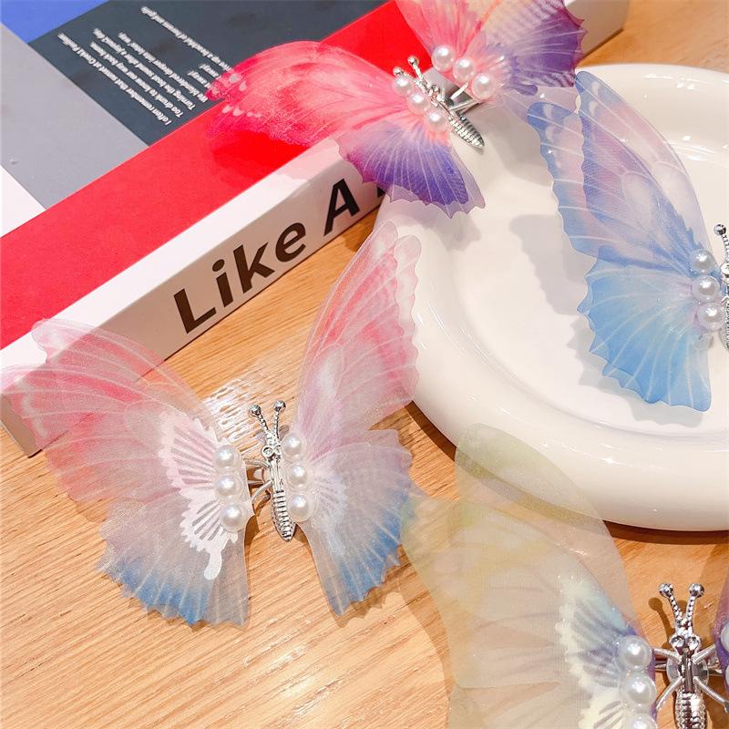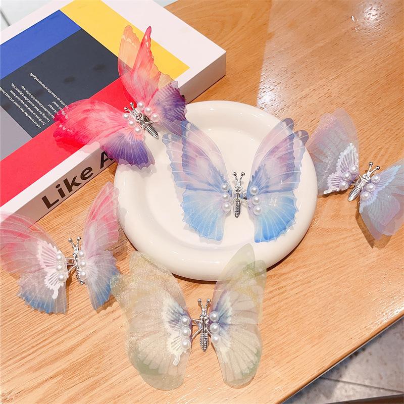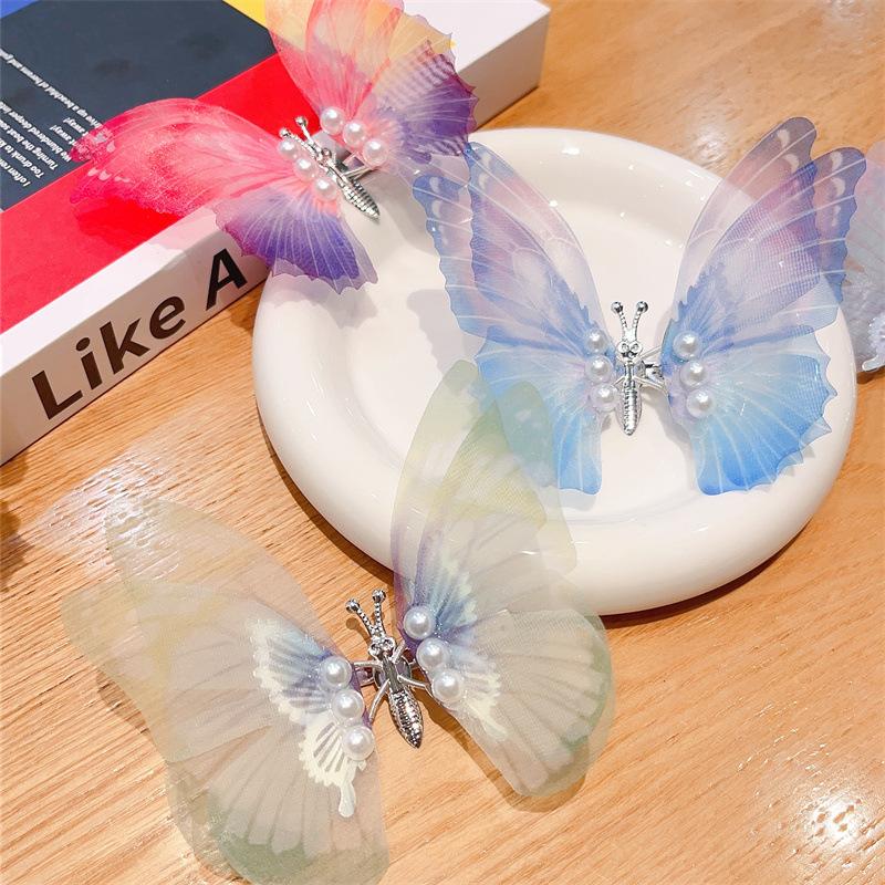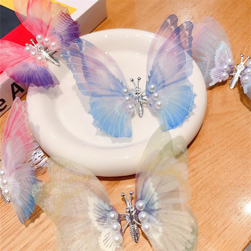 Horquilla con forma de mariposa y perlas de Super Hada en movimiento, estilo Hanfu, accesorios antiguos para el cabello para bebés y niños, venta al por mayor de horquillas, tocados para mujer, joyería