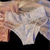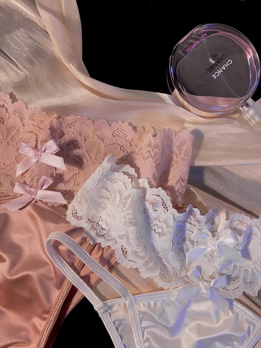Pantaletas sexys para mujer, satén puro, cintura baja, encaje de corte cruzado, calzones de entrepierna de algodón puro antibacteriano