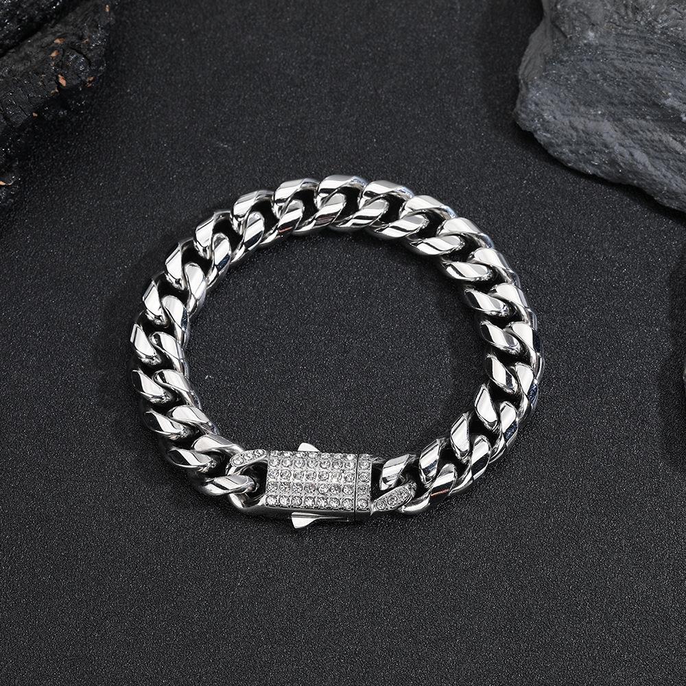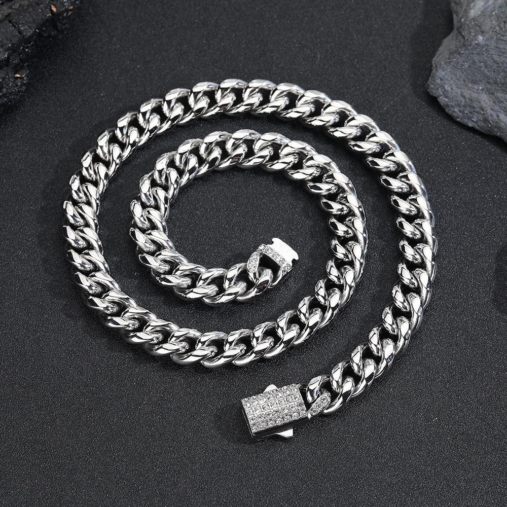 Collar de acero inoxidable con cadena cubana, hebilla de resorte de circonita, estilo hip-hop, personalizado, para hombre, estilo transfronterizo europeo y americano