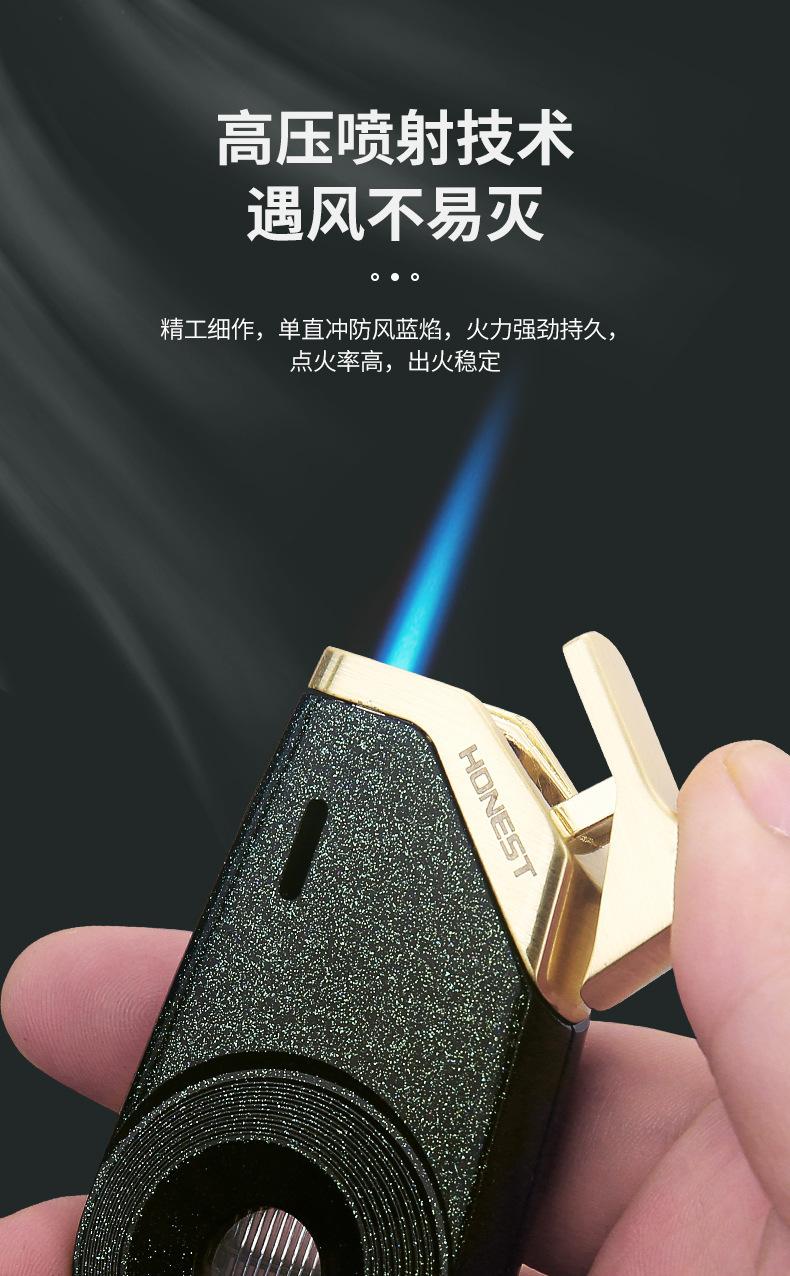 Encendedor de metal a prueba de viento con personalidad creativa, inflable, con personalidad creativa, llama azul, encendedor de cigarros recto, color de alto valor