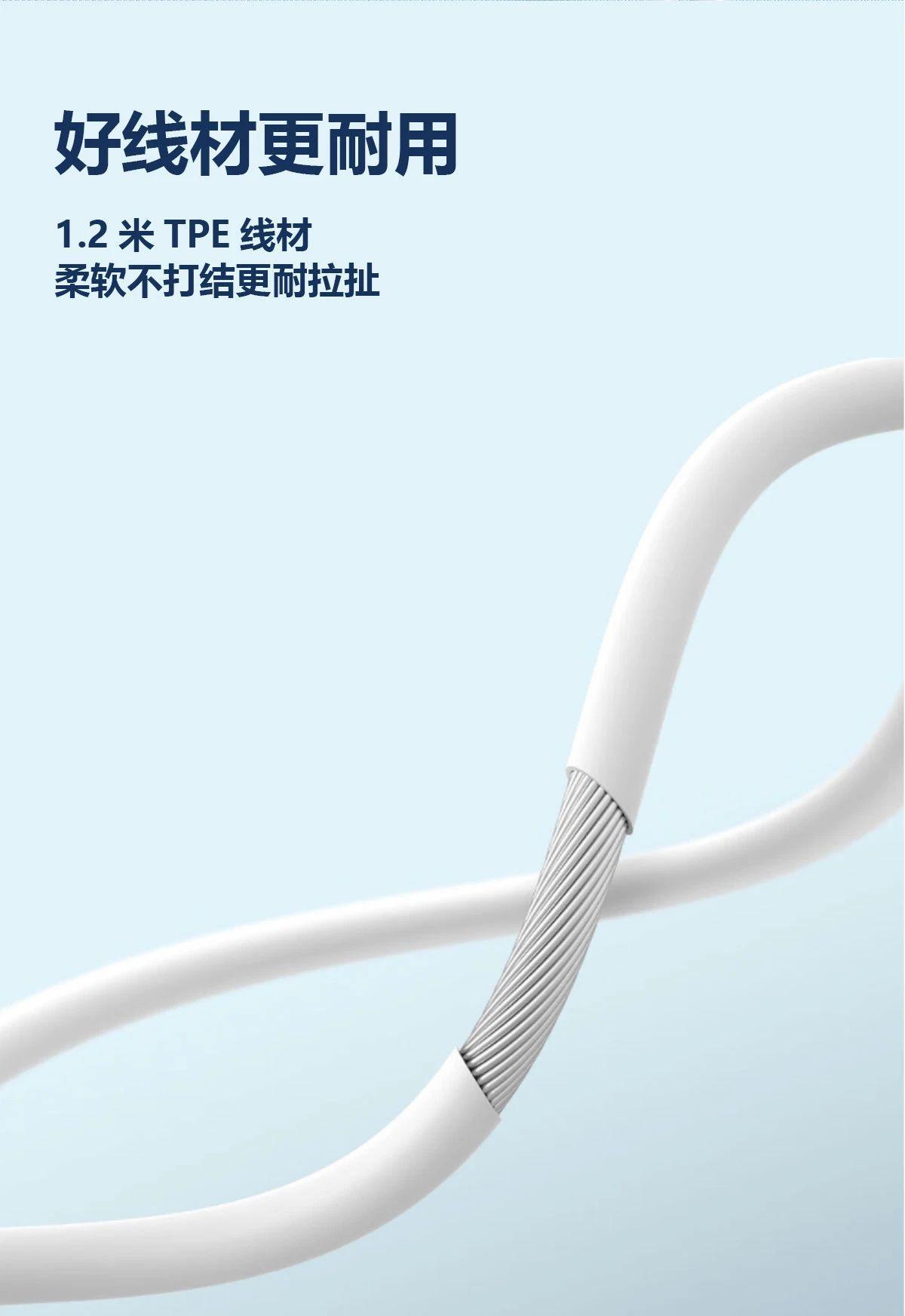 El cable TPE de 1.2 m es suave, no se enreda y es más resistente al tirón.