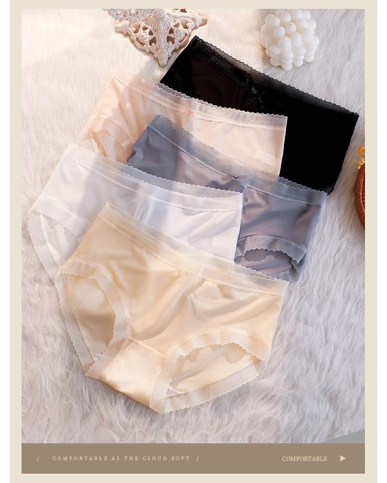 Ropa interior de seda de hielo para mujer, de verano, sin dejar huellas, fina, de secado rápido, de color sólido, de algodón, con entrepierna, pantalones cortos triangulares sexys para niña.