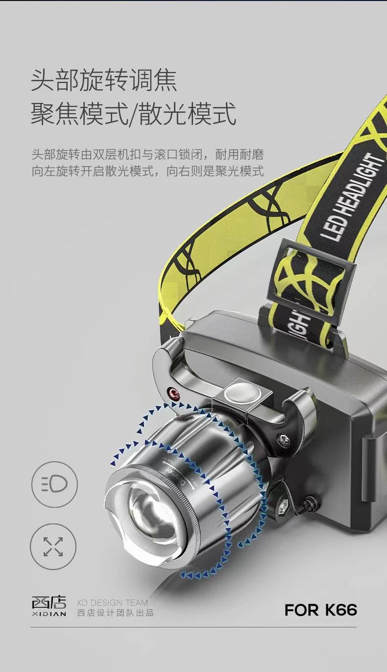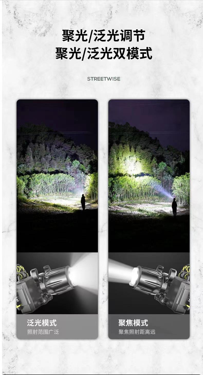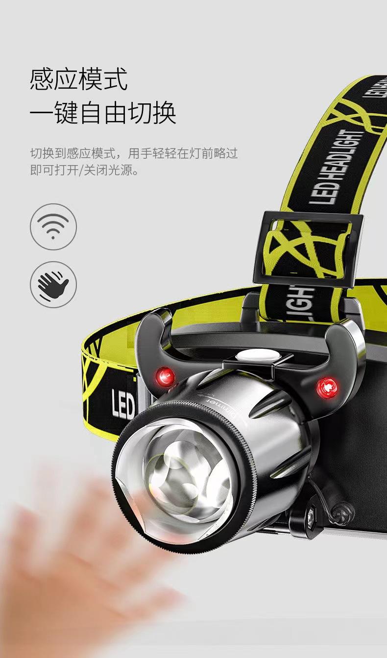 Linterna frontal de carga brillante, superbrillante, de inducción, impermeable, con zoom, para pesca nocturna, iluminación de largo alcance, para exteriores, montada en la cabeza, lámpara de minero