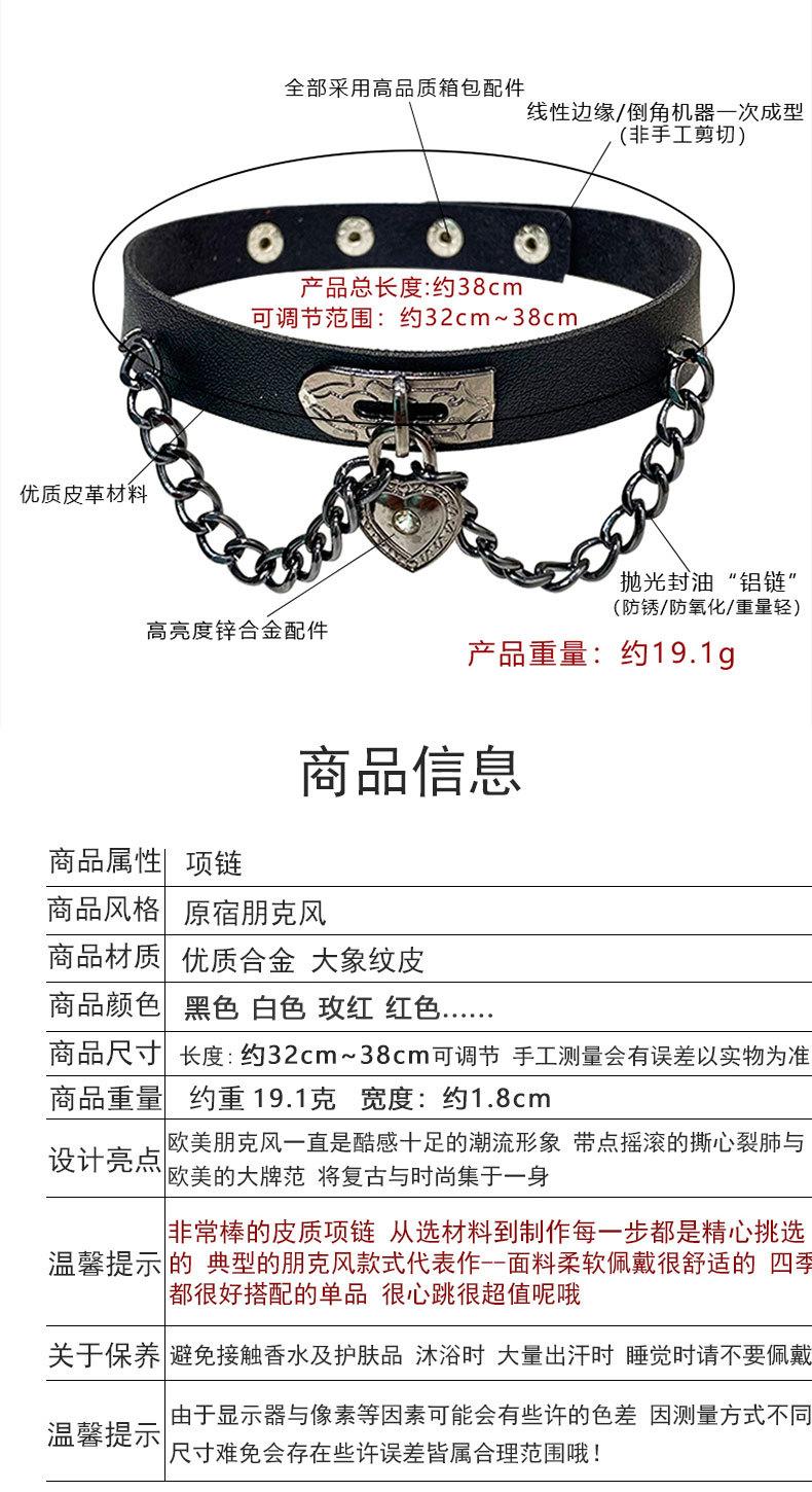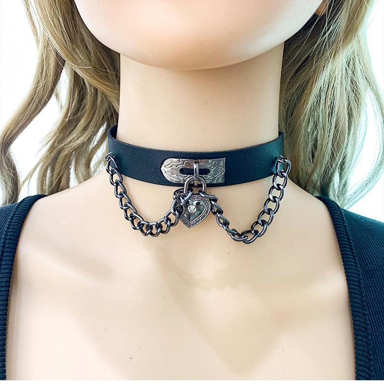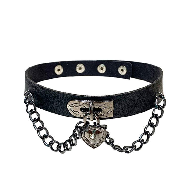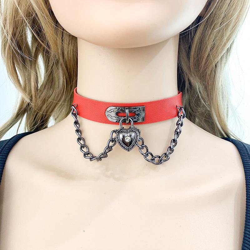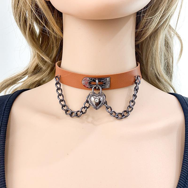 Gargantilla Oscura Europea y Americana Estilo Punk Corazón Cuero Collar Cadena Correa para el Cuello Corazón Durazno Collar Estilo Harajuku Cadena para Clavícula