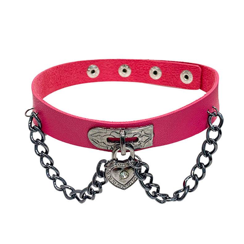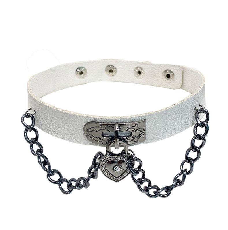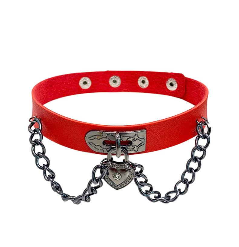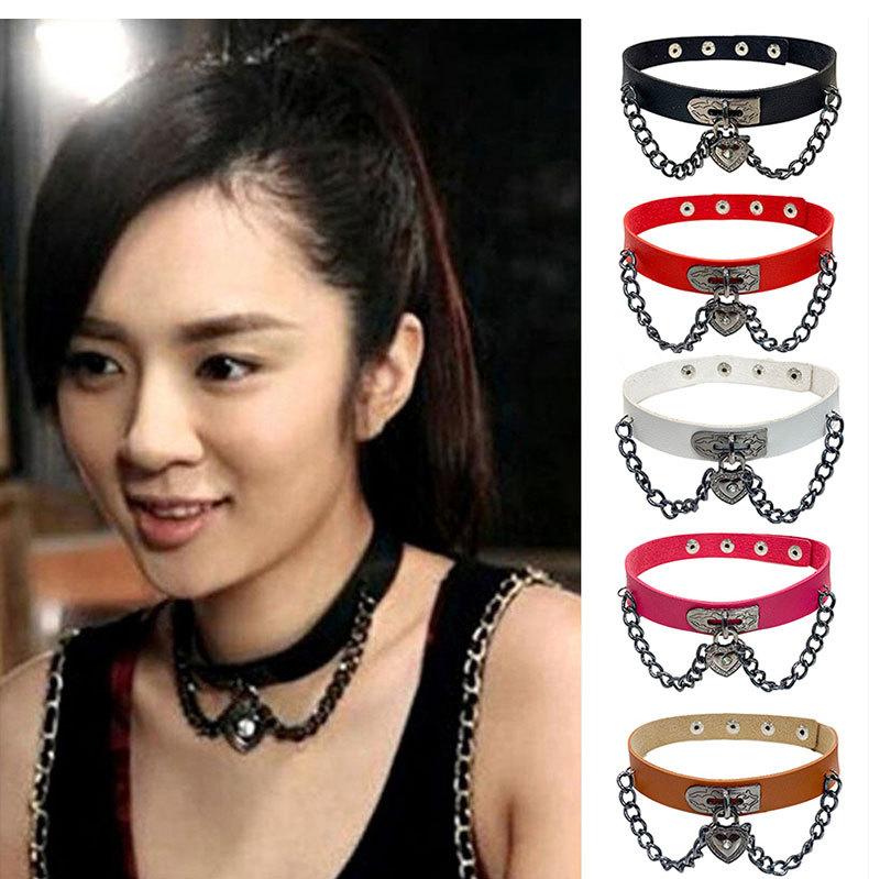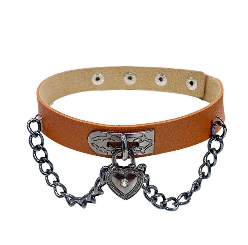Gargantilla Oscura Europea y Americana Estilo Punk Corazón Cuero Collar Cadena Correa para el Cuello Corazón Durazno Collar Estilo Harajuku Cadena para Clavícula