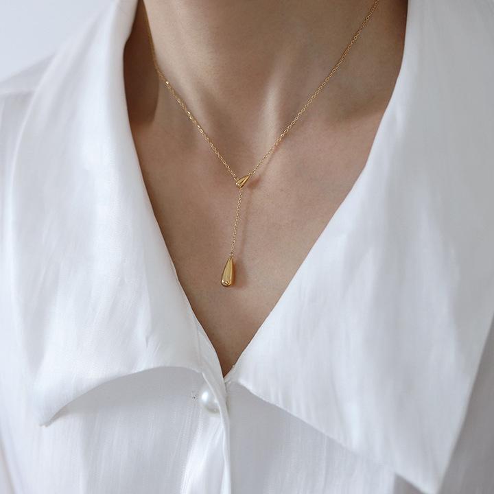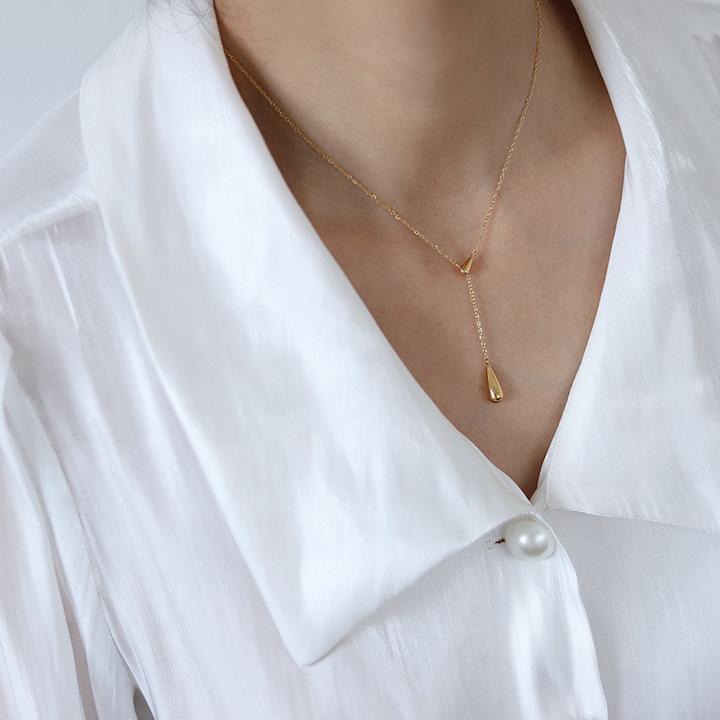 Tamaño de la cadena clavicular: longitud de la cadena de unos 40 cm (cadena de extensión de unos 5 cm) colgante gota de agua grande altura de unos 1.3 cm