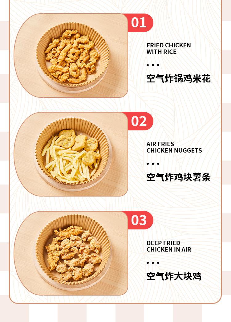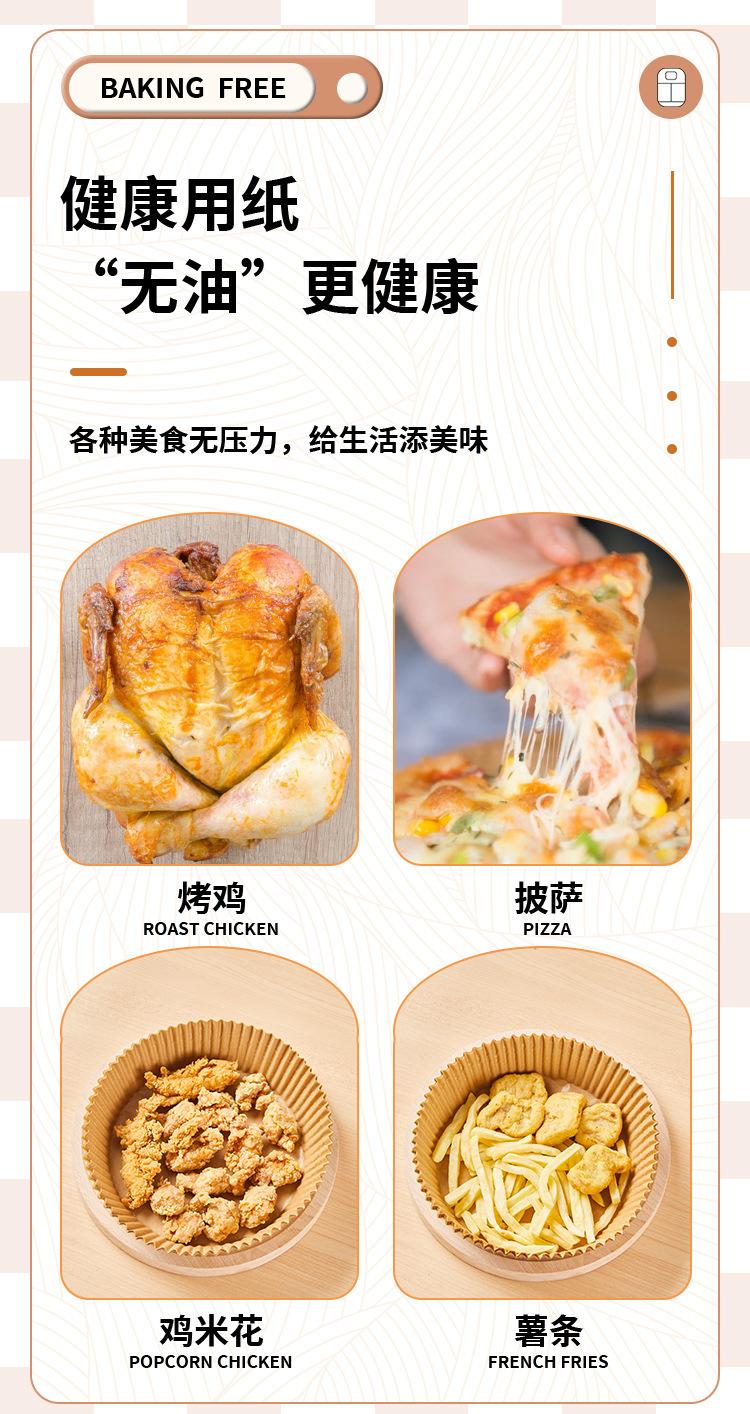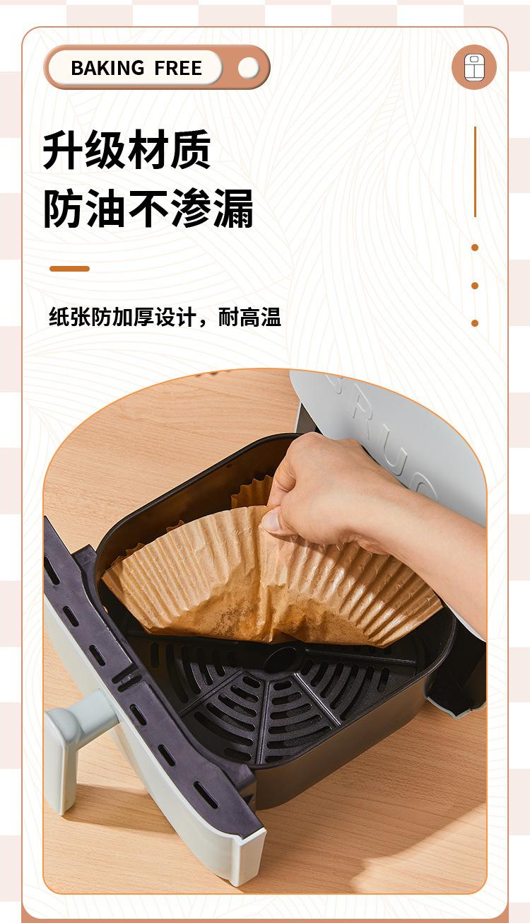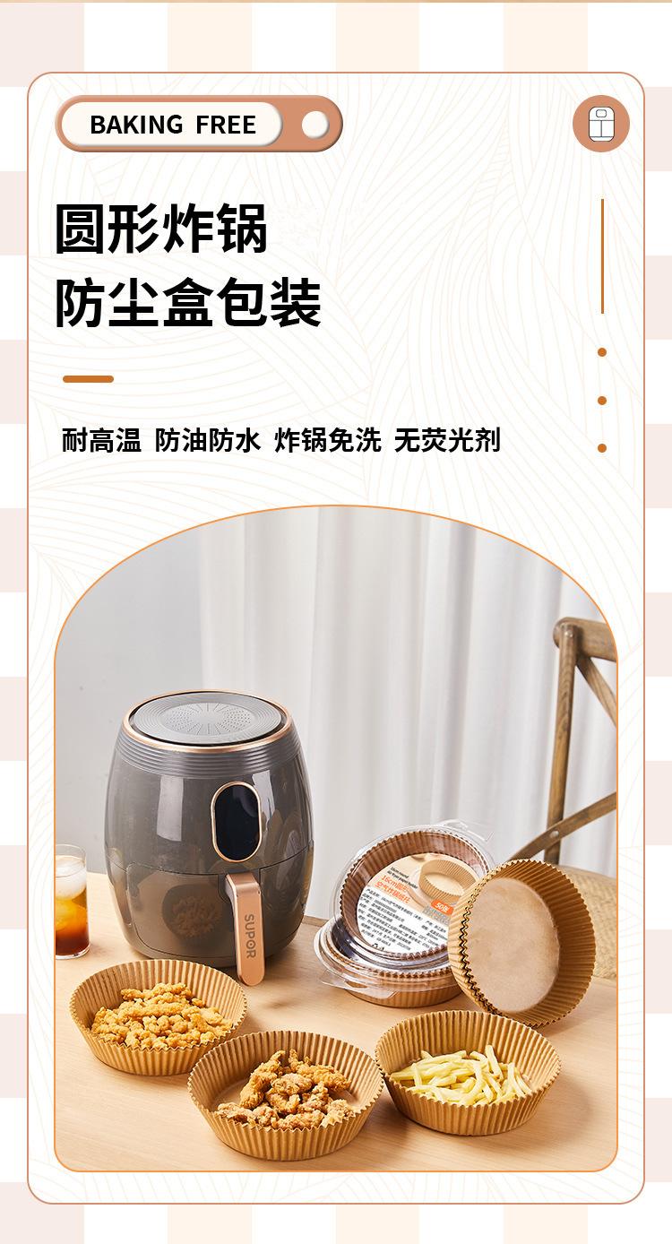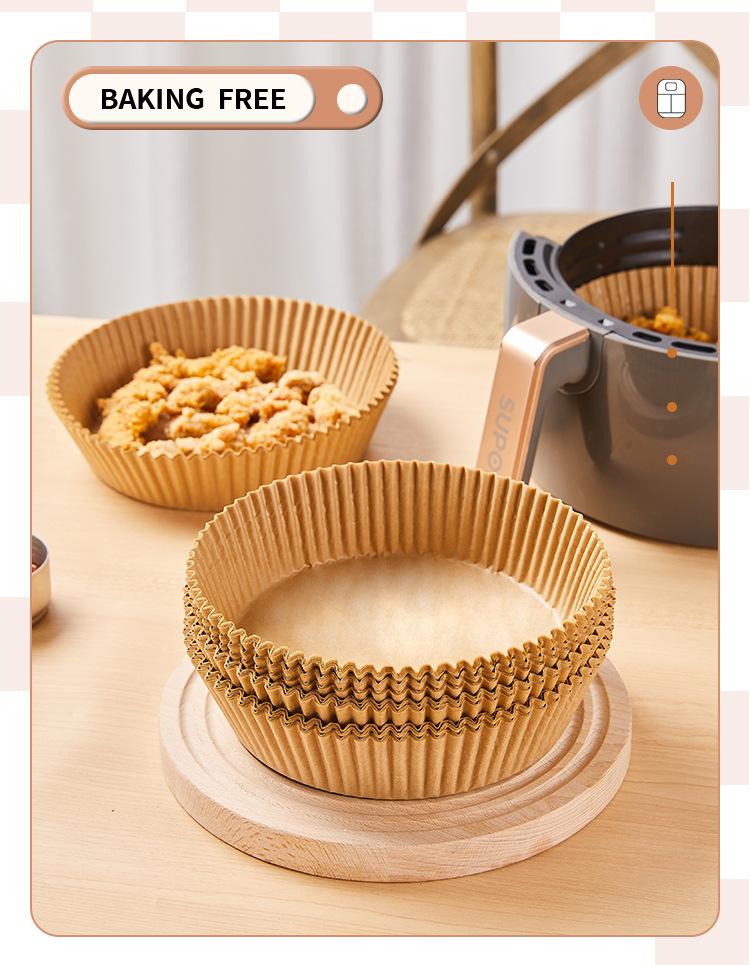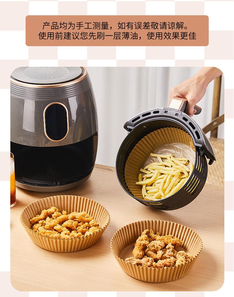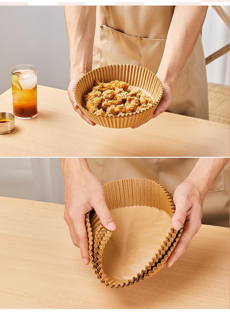 Plato de papel especial para freidora de aire doméstica, resistente a altas temperaturas, absorbente de aceite, para hornear alimentos en horno, papel de silicona para aceite, barbacoa, redondo