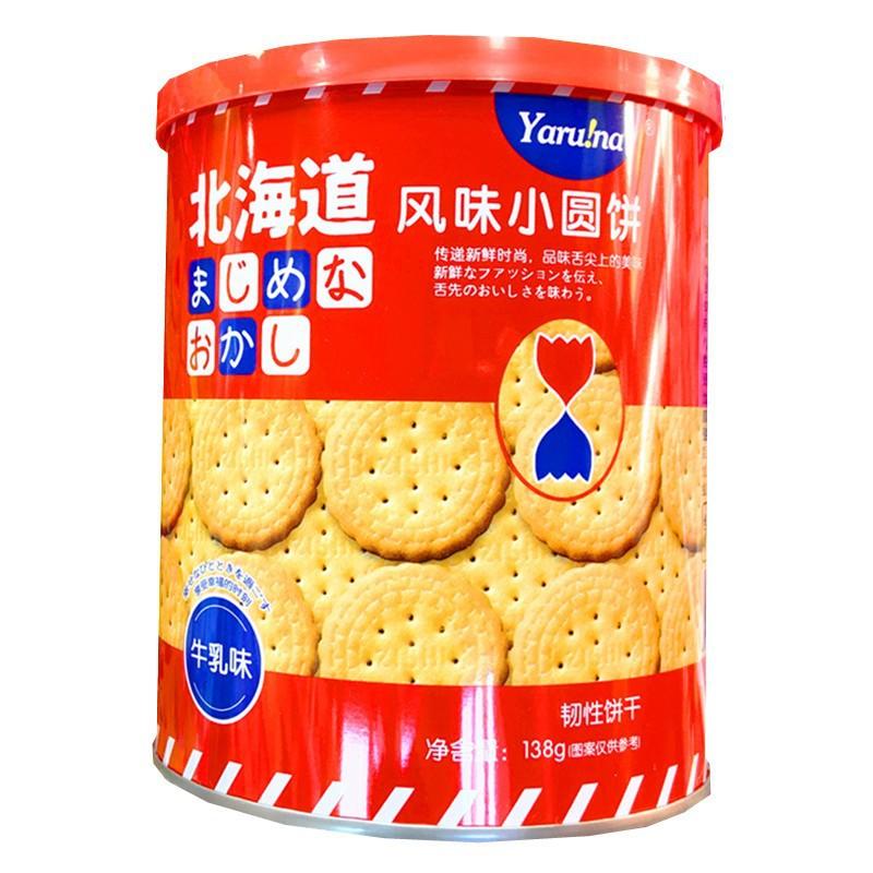 Pastel redondo pequeño estilo japonés con sabor Beihaidao enlatado, 138 g al día, sabor a leche salada, galleta pequeña inflada, refrigerio informal