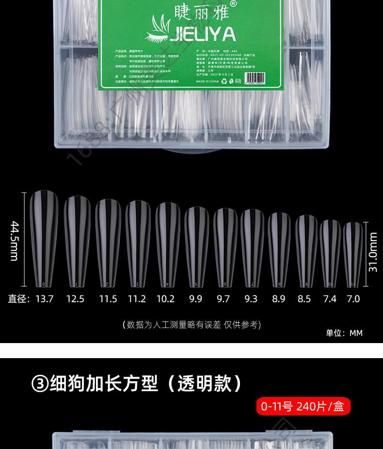 Transparent extension tip (240 pieces), Transparent extended ladder (240 pieces), Transparent rectangle (240 p...