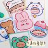 Tarjeta de felicitación creativa con un oso rosa de aspecto alto, con sobre, carta, papel, niña, corazón, traje de dibujos animados, mensaje de regalo exquisito