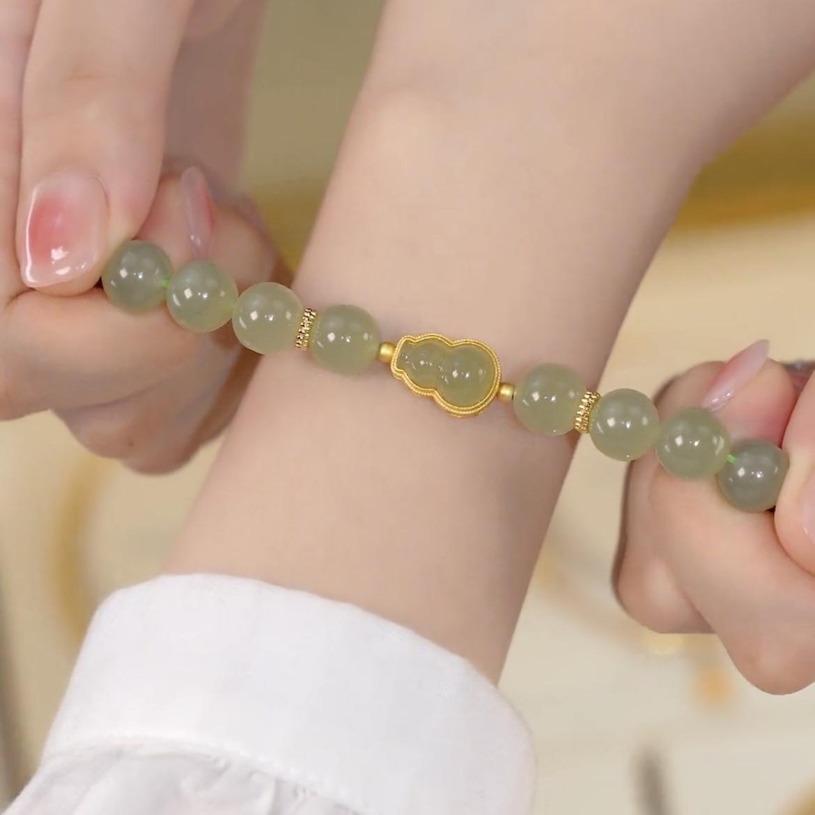 Pulsera Fu Lu femenina diseño nicho ins nueva pulsera Fu Lu imitación jade Hetian femenina pulsera retro de lujo ligero simple