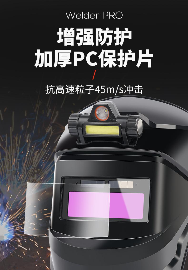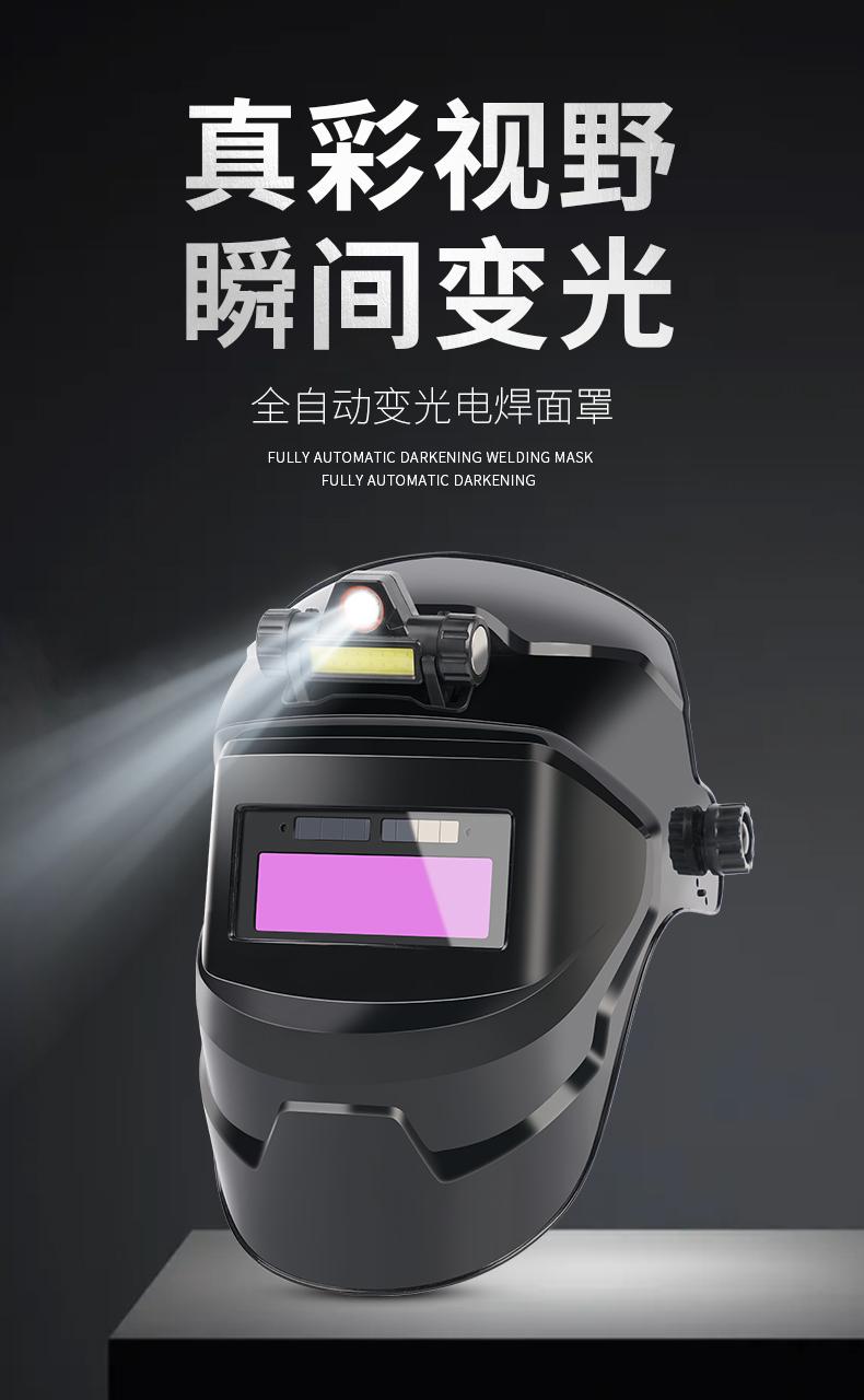 Cubierta protectora para soldadura eléctrica máscara de atenuación automática de cara completa ligera montada en la cabeza soldadura soldadura por arco de argón sombrero máscara canal para los ojos