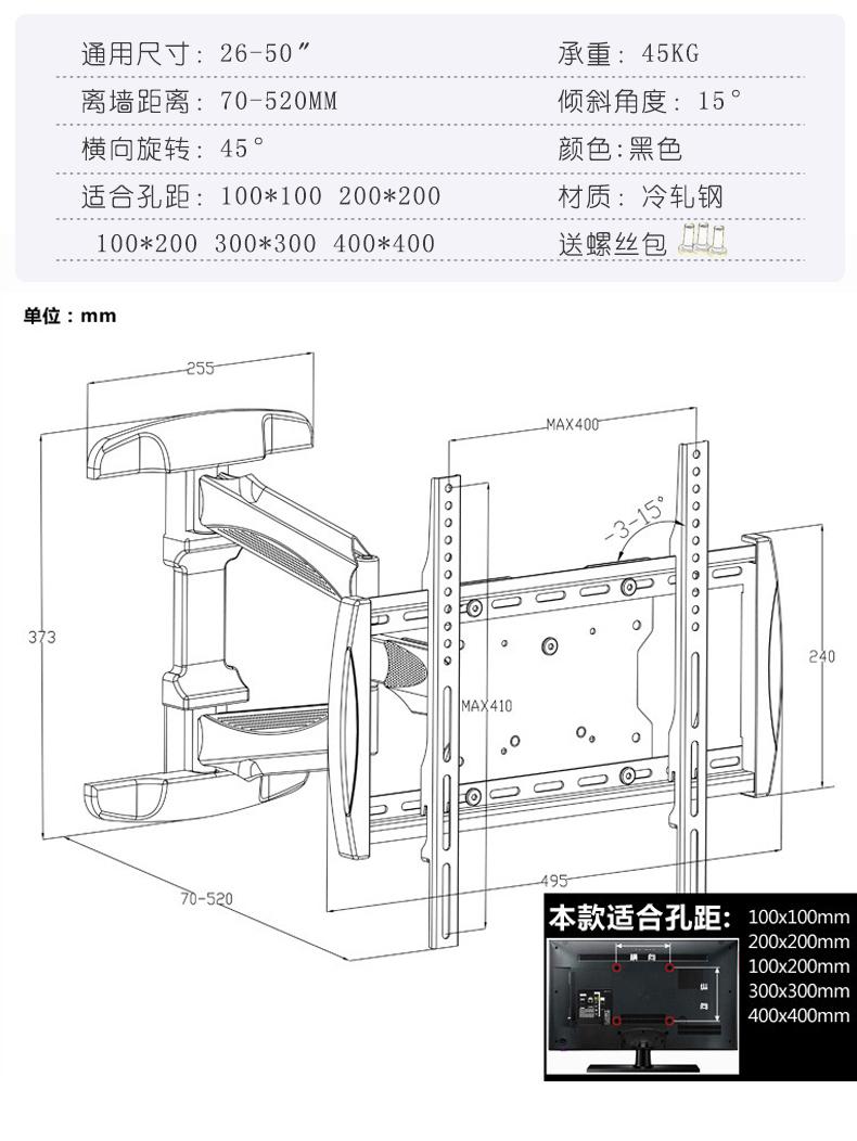 Zilcheng Soporte de pared telescópico giratorio para TV LCD de 26 a 50 pulgadas