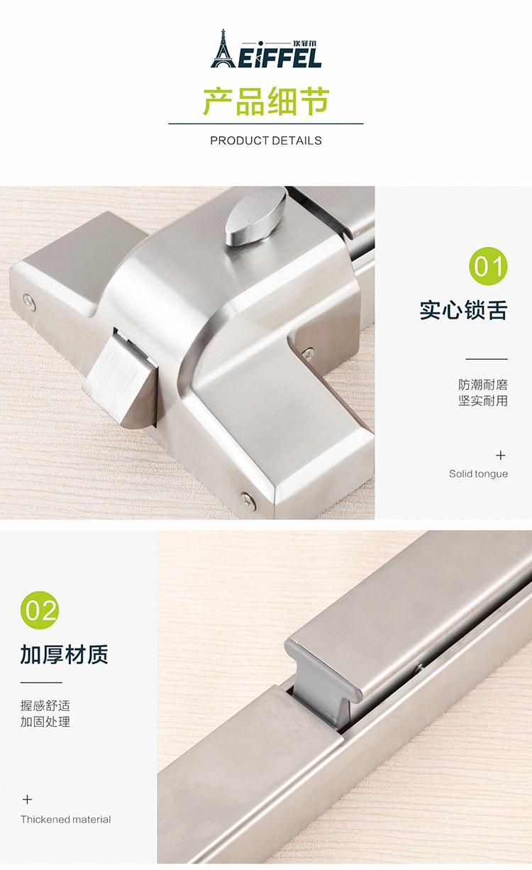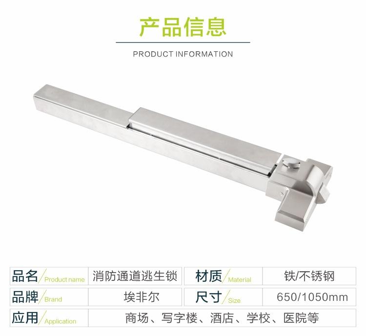 Cerradura de escape para puerta cortafuegos de un solo lado, cerradura de canal de seguridad de empuje plano, cerradura de varilla de empuje contra incendios de acero inoxidable con alarma