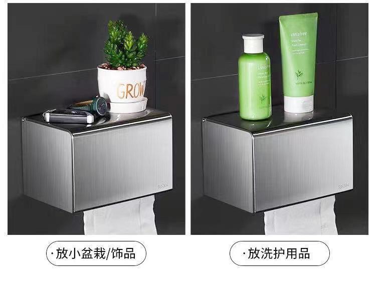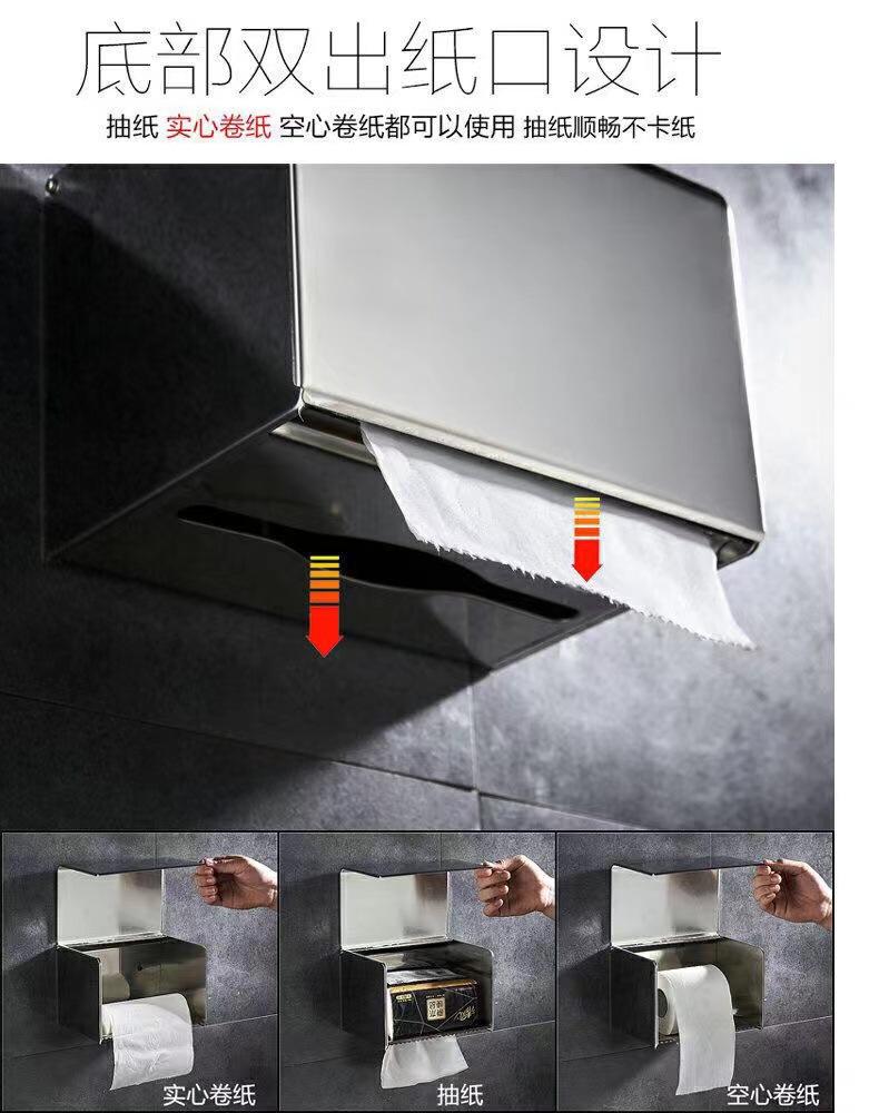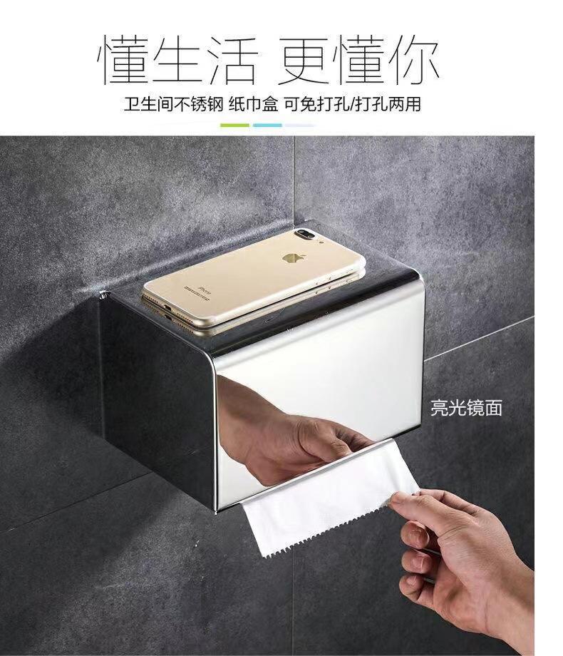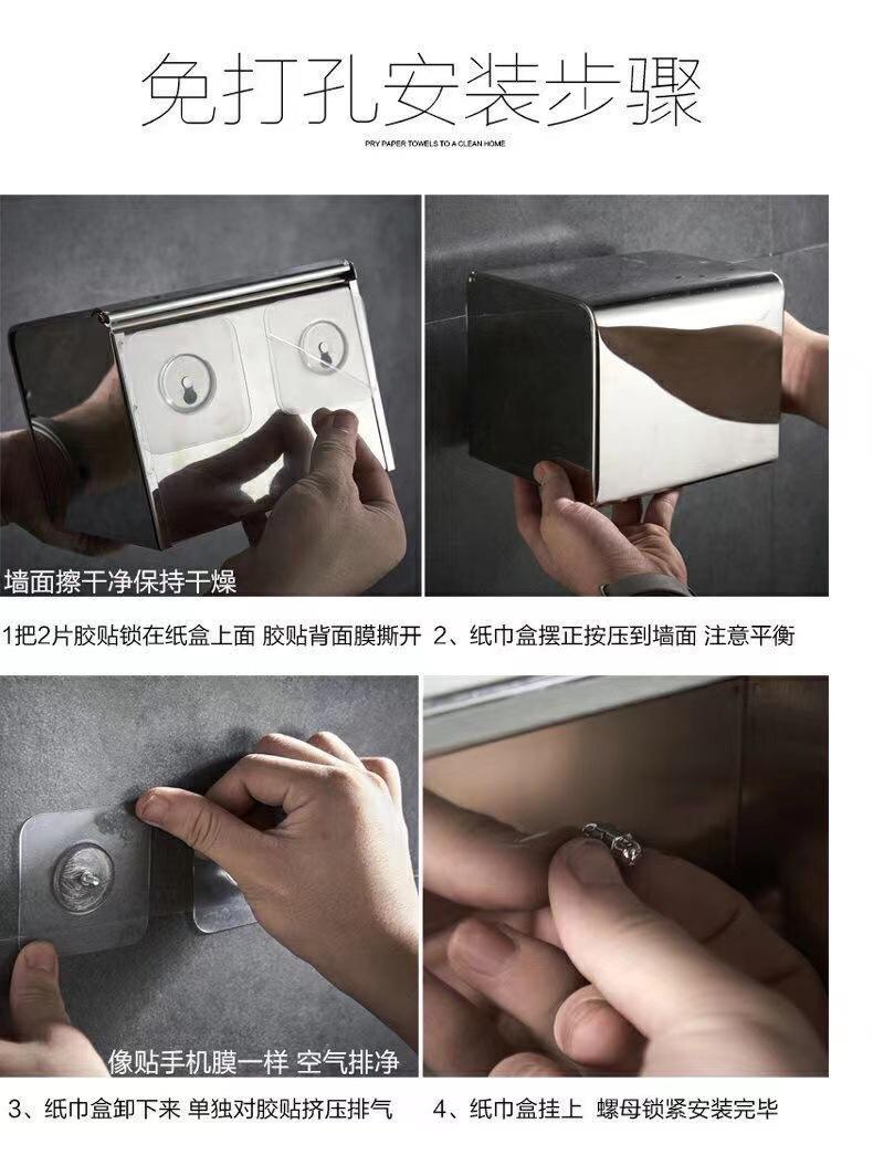 Caja de pañuelos cuadrada de acero inoxidable 304, resistente al agua, con rodillo para papel higiénico, sin perforaciones