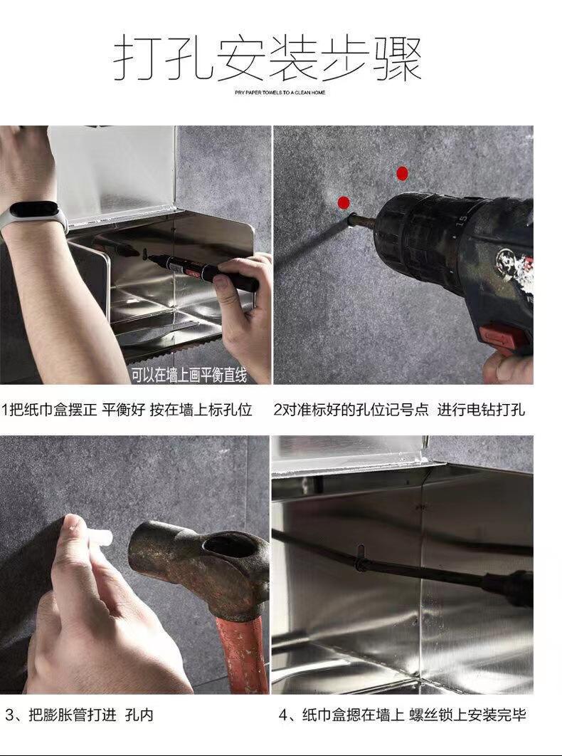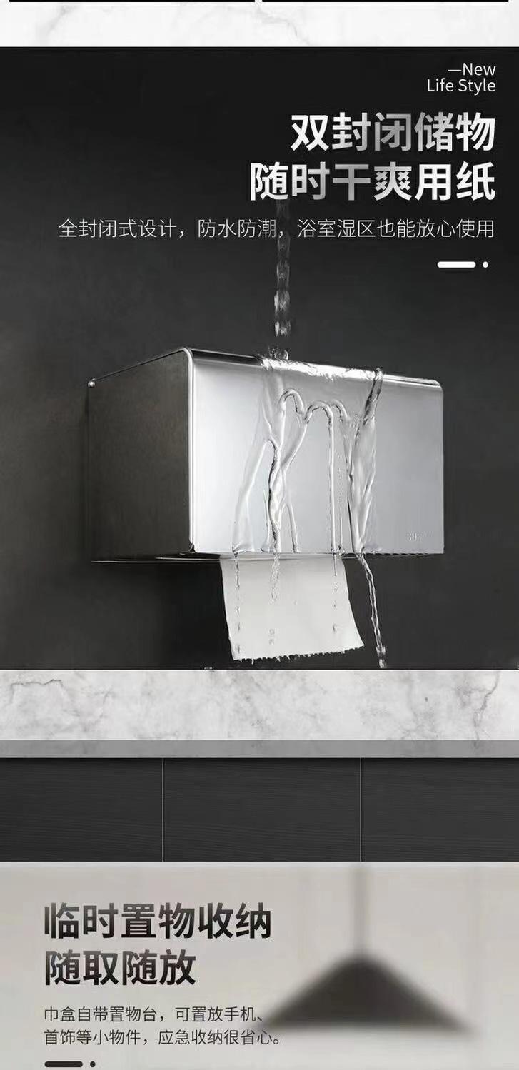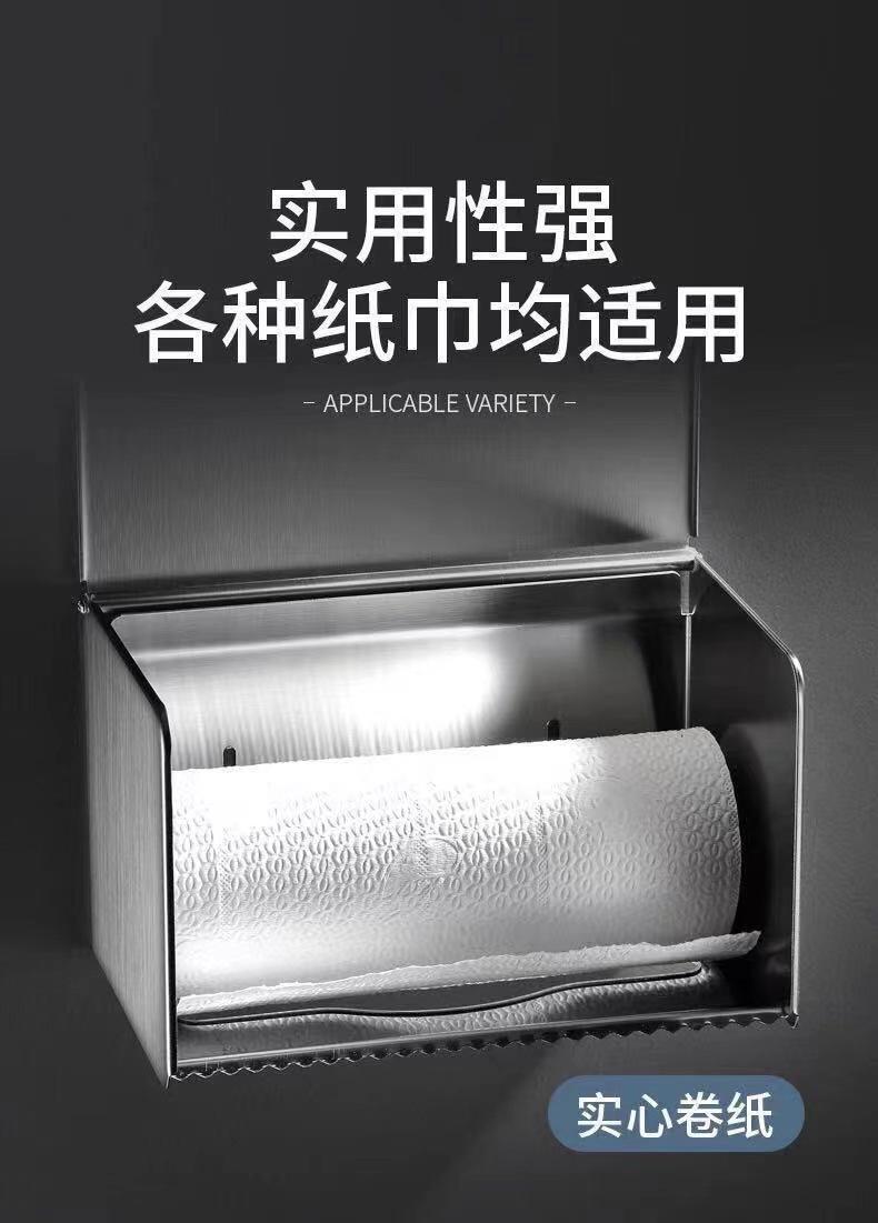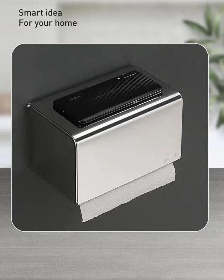 Caja de pañuelos cuadrada de acero inoxidable 304, resistente al agua, con rodillo para papel higiénico, sin perforaciones