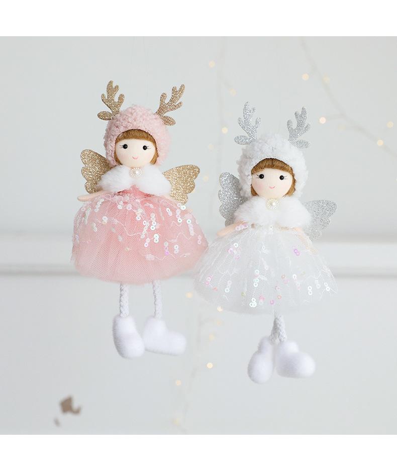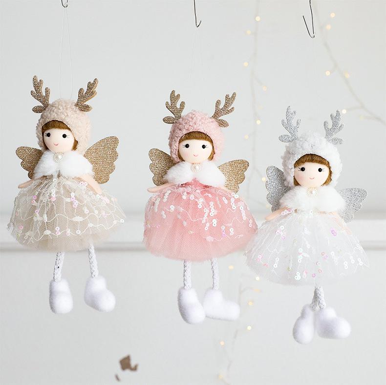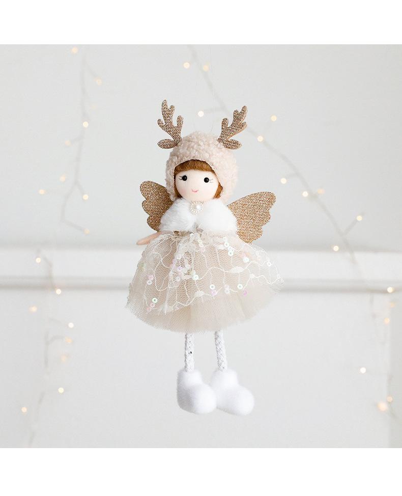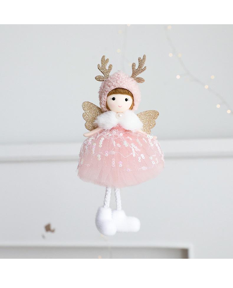 Ángel de niña colgante, regalo navideño para niños, colgante para árbol de Navidad, vestido de malla con cuentas, decoraciones navideñas combinables