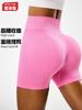 Shorts Deportivos de Verano Yoga Fitness para Mujer 9 pulgadas Cintura Alta Cepillados Levantamiento de Cadera Shorts Trasero Melocotón Leggings Sin Costuras