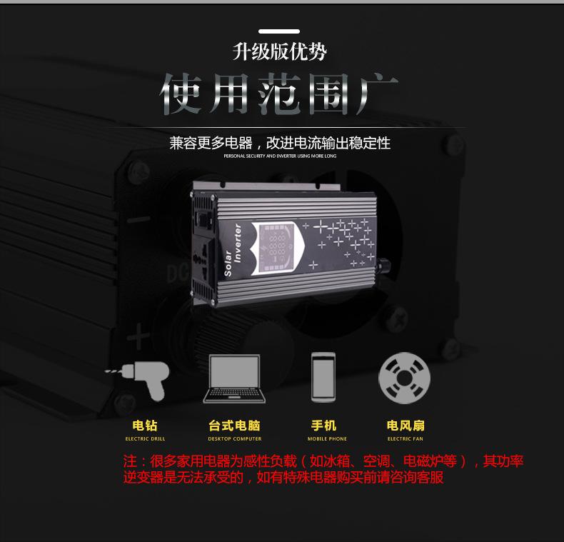 -1.Este es un inversor de onda sinusoidal modificada, NO aplicable para dispositivos que funcionan con motor incorporado, secadores de pelo, aires acondicionados, cafeteras, bombas de agua, cocinas de inducción, refrigeradores y hornos microondas, etc. Asegúrese de que la potencia nominal total de los dispositivos conectados sea ≤600 W