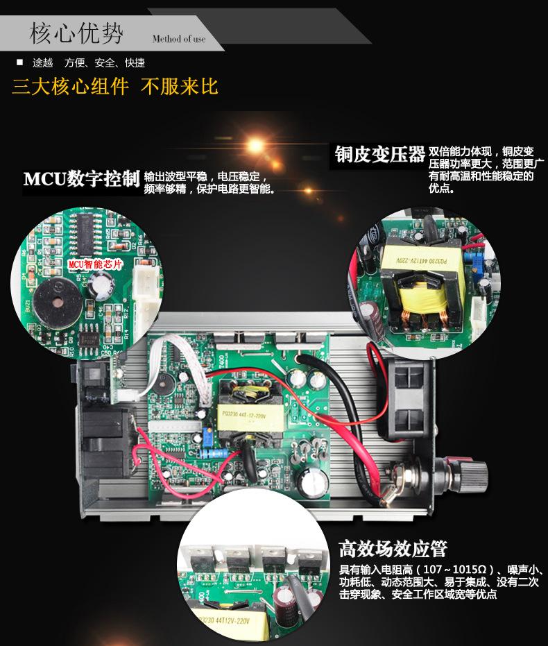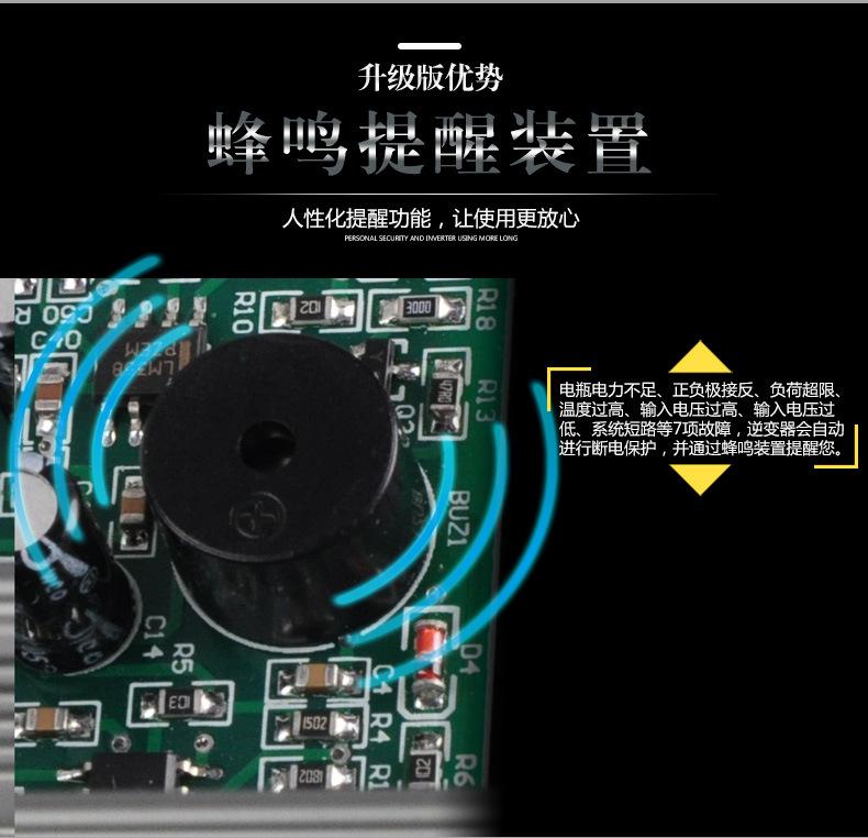【Pantalla LCD MCU】 el inversor de coche tiene la unidad de microcontrol LCD realiza el intercambio de información humano-máquina, y puede conocer el estado de funcionamiento del inversor en tiempo real, incluyendo voltaje de entrada, voltaje de salida, frecuencia de salida, energía de la batería, carga y otra información.