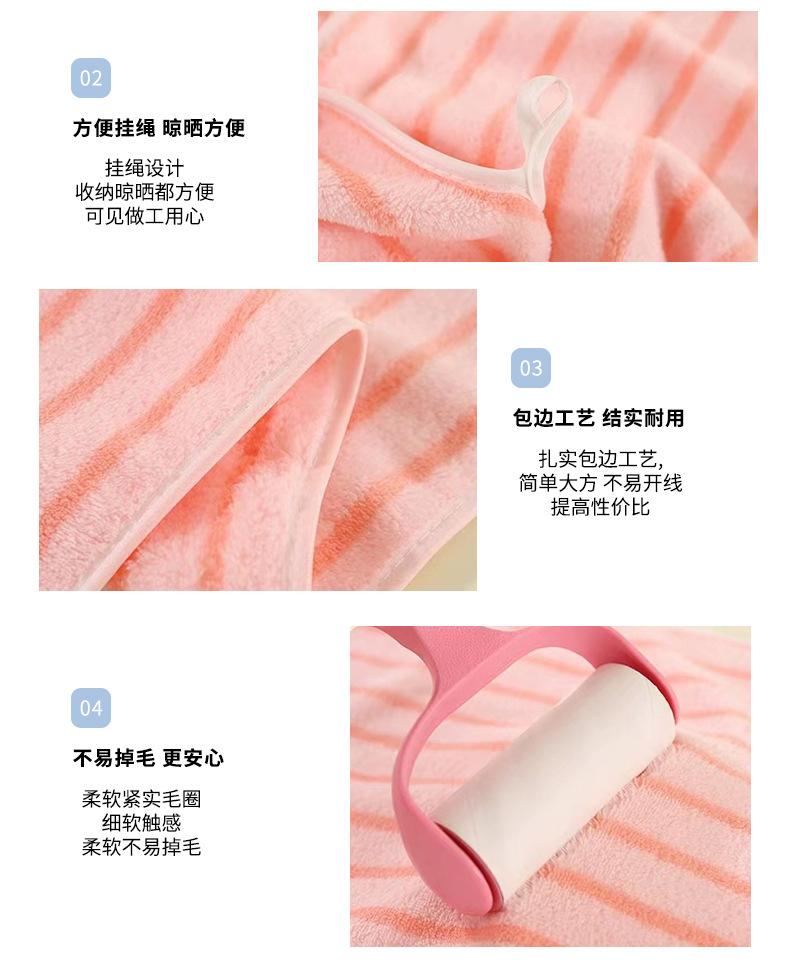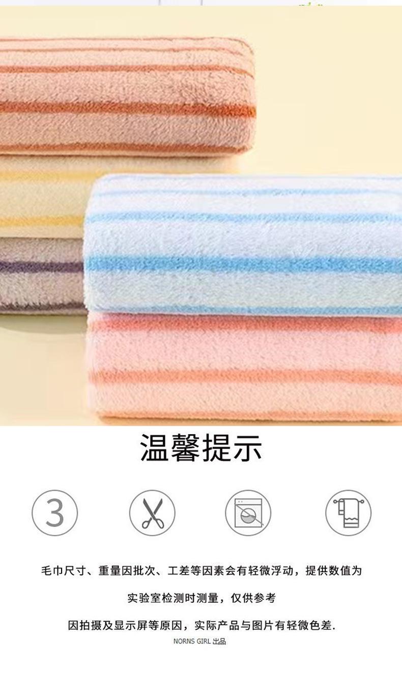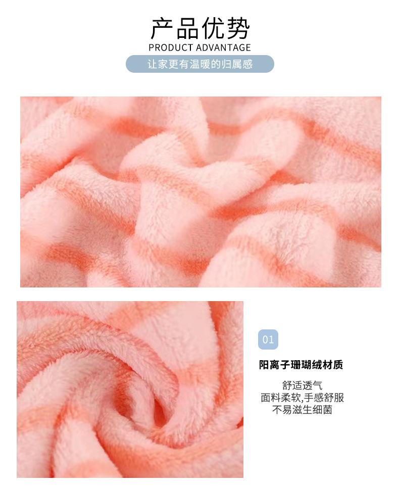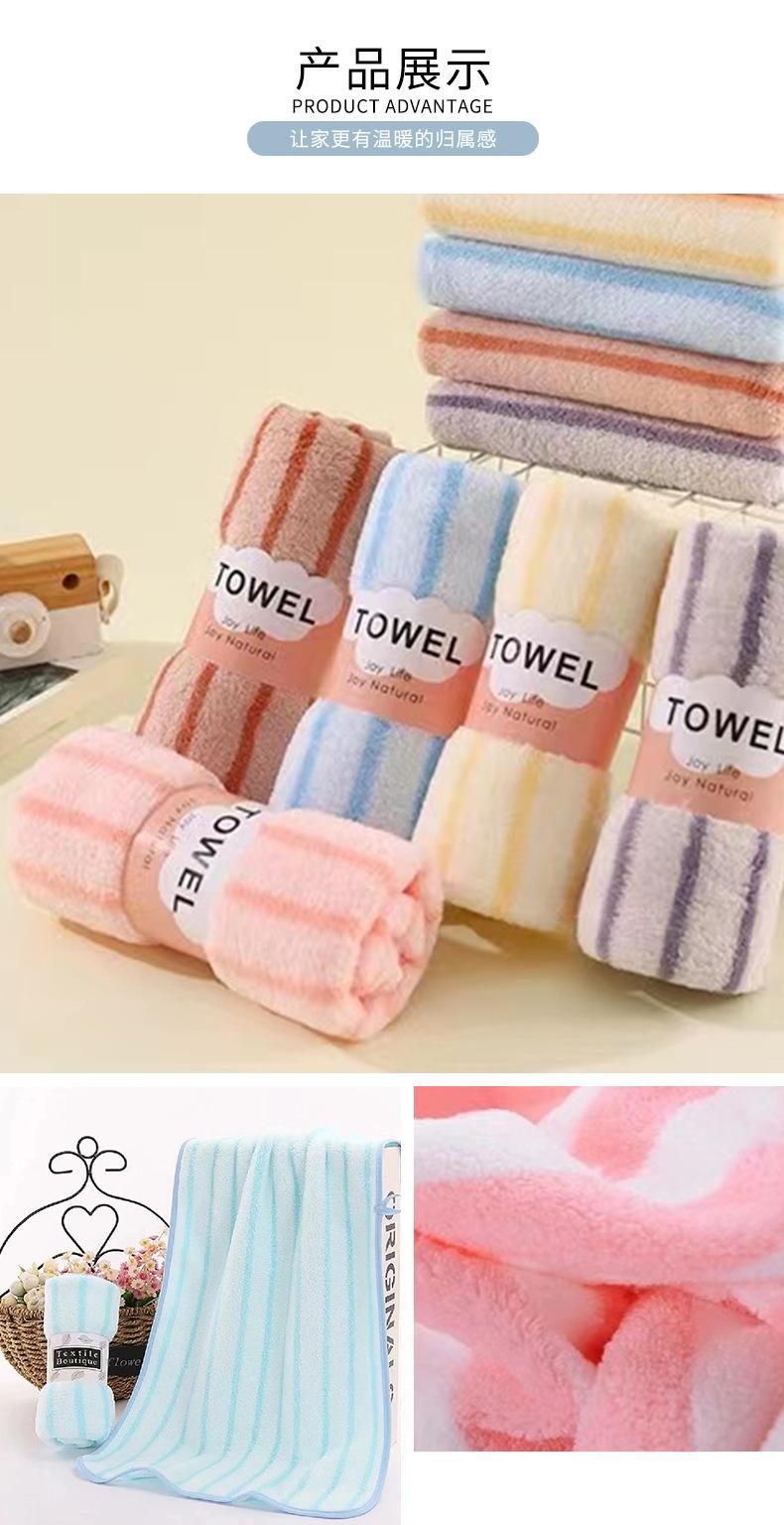 Toalla de terciopelo coral a rayas, gruesa, absorbente, de secado rápido, sin pelusa, para secar el cabello, ideal para el baño de adultos y el hogar.