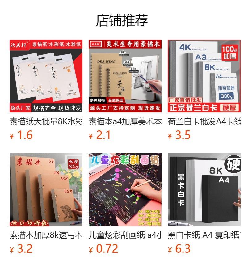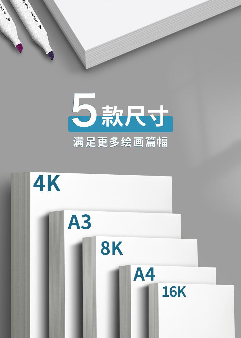 Especificaciones: Papel A4/8K/A3/4K: papel de boceto de 110g/160g