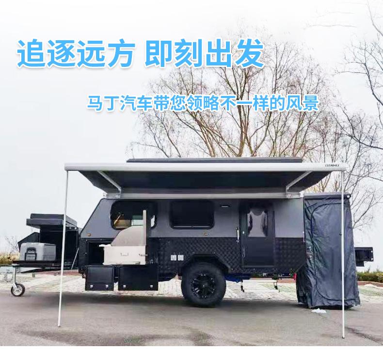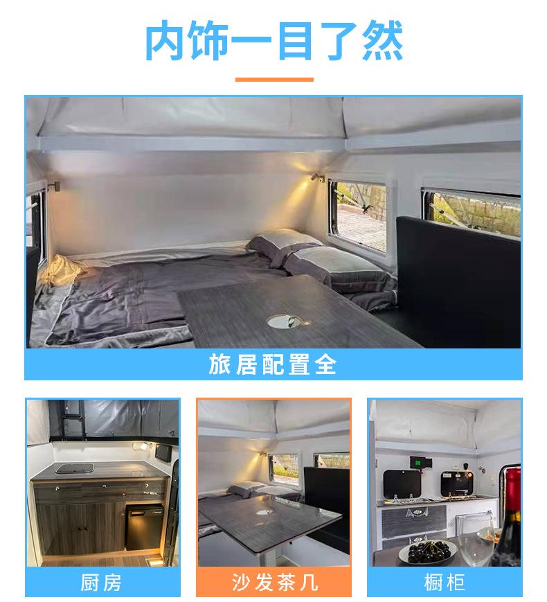 Remolque de viaje, remolque vacacional, remolque autónomo, estilo camping todoterreno, remolque móvil de techo