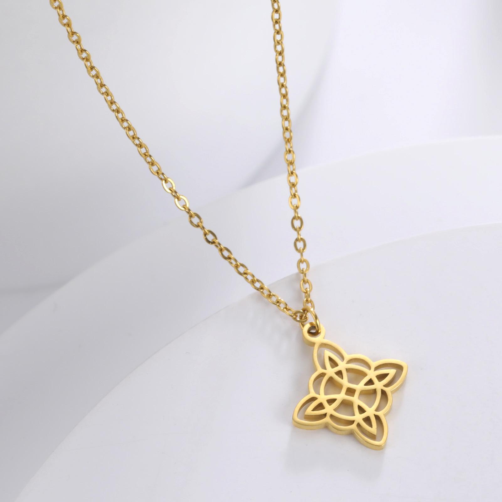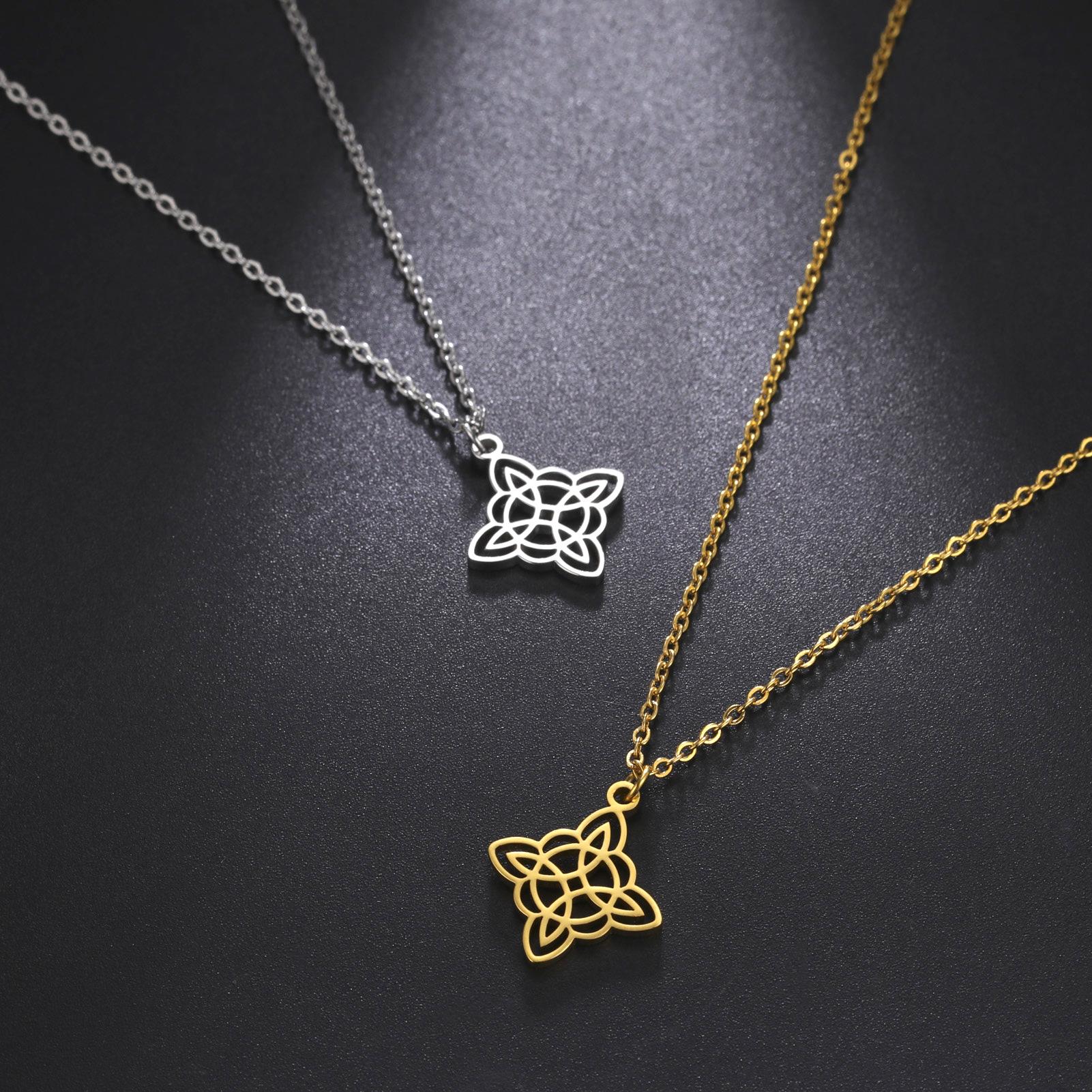 Collar de acero inoxidable con colgante de patrón redondo concéntrico continuo cuadrado de color acero titanio de moda transfronteriza europea y americana