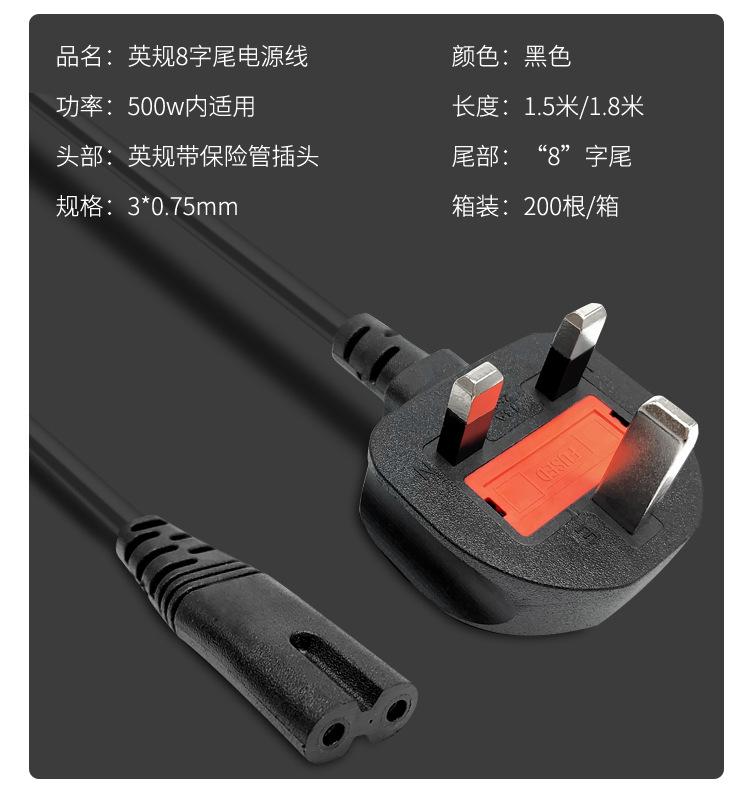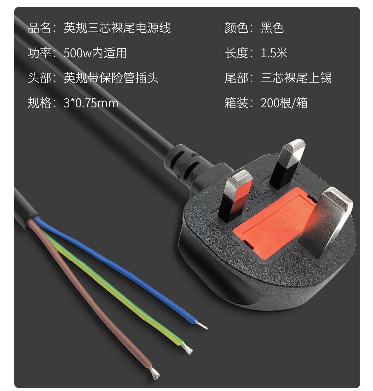 Cable de pantalla estándar británico Cable de alimentación británico con fusible Cable de alimentación estándar británico Enchufe de Hong Kong