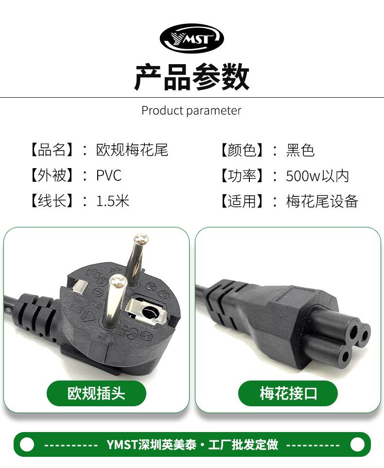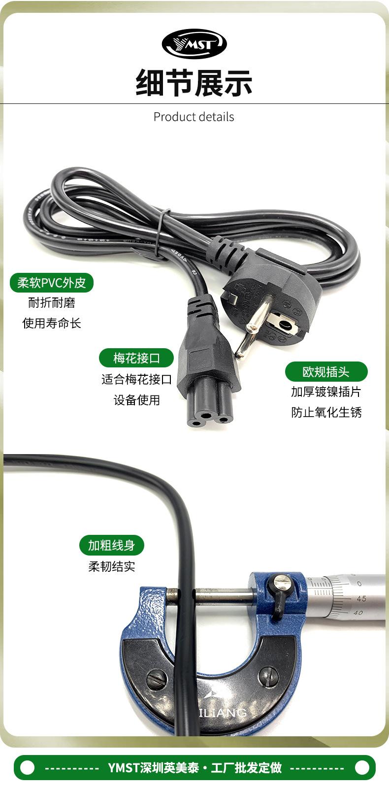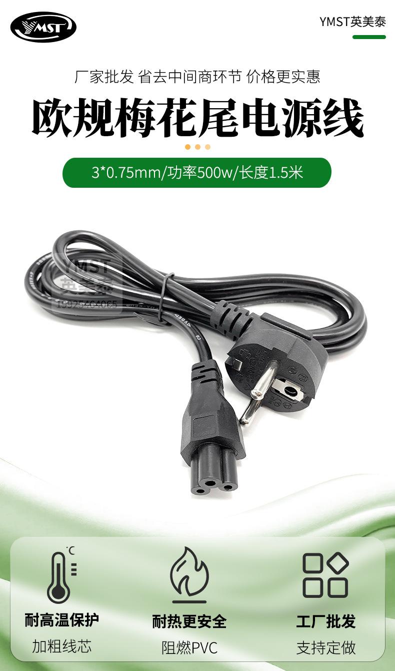 Cable de alimentación europeo con cola de flor de ciruelo europeo Línea de CA europea Cable de enchufe para computadora portátil Cable de alimentación estándar europeo 1.5m metros