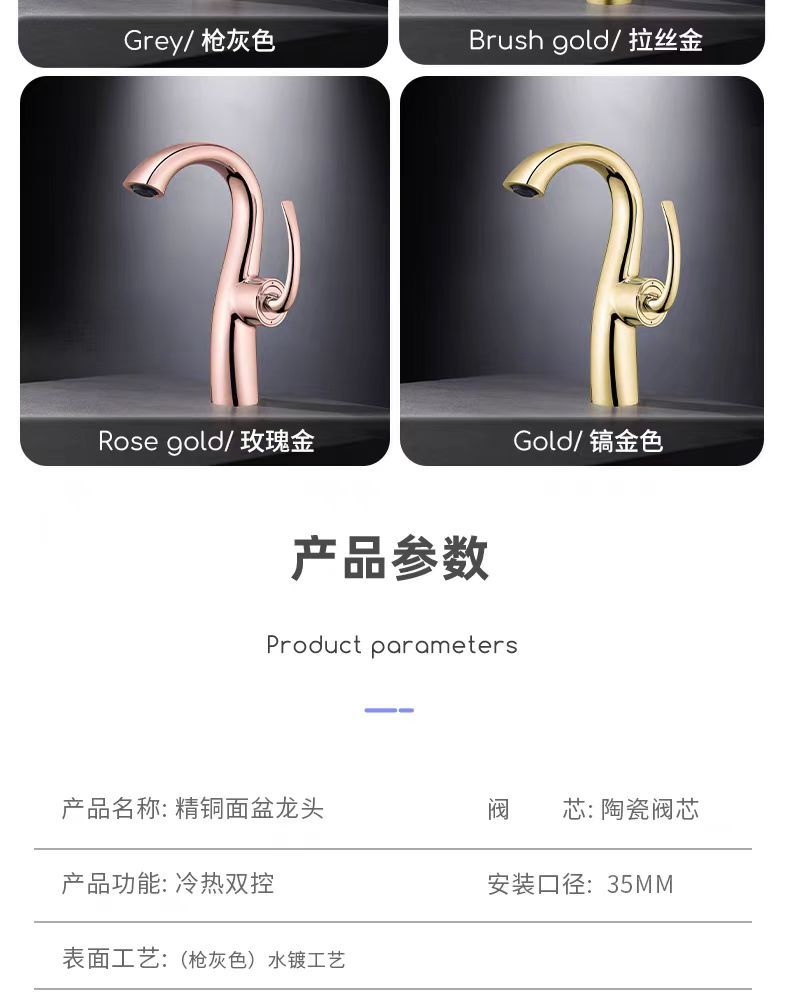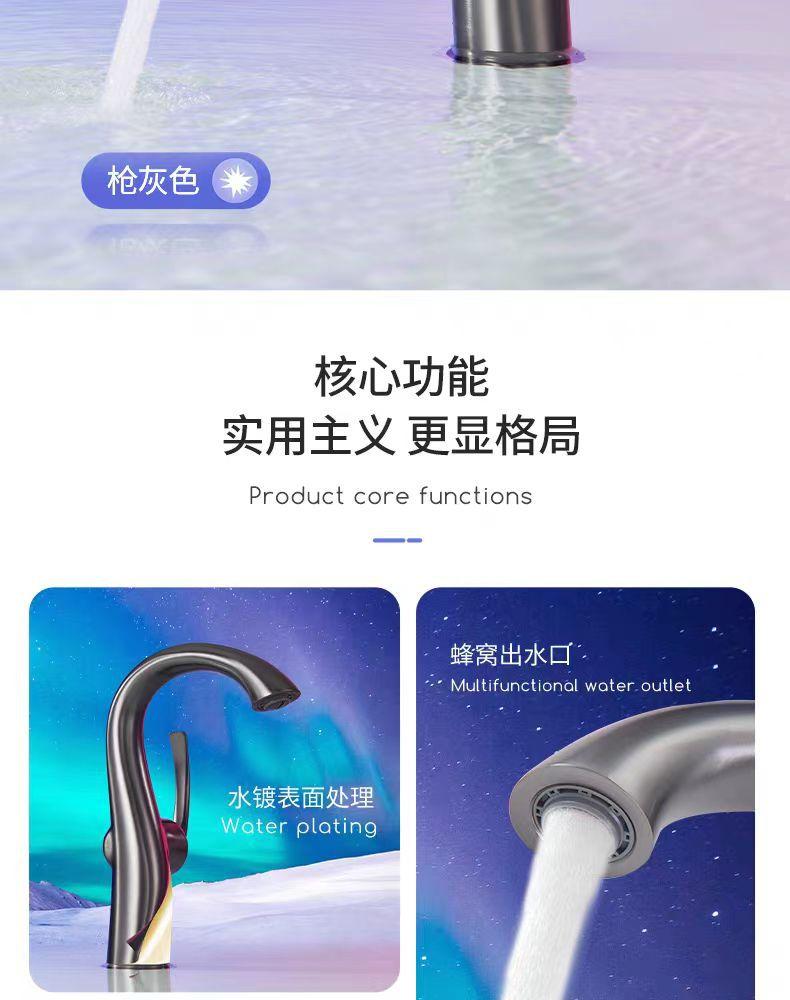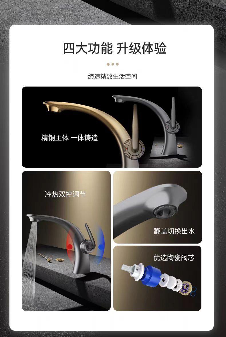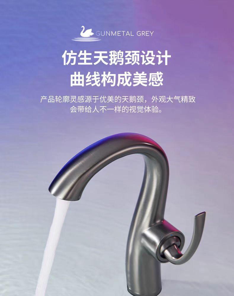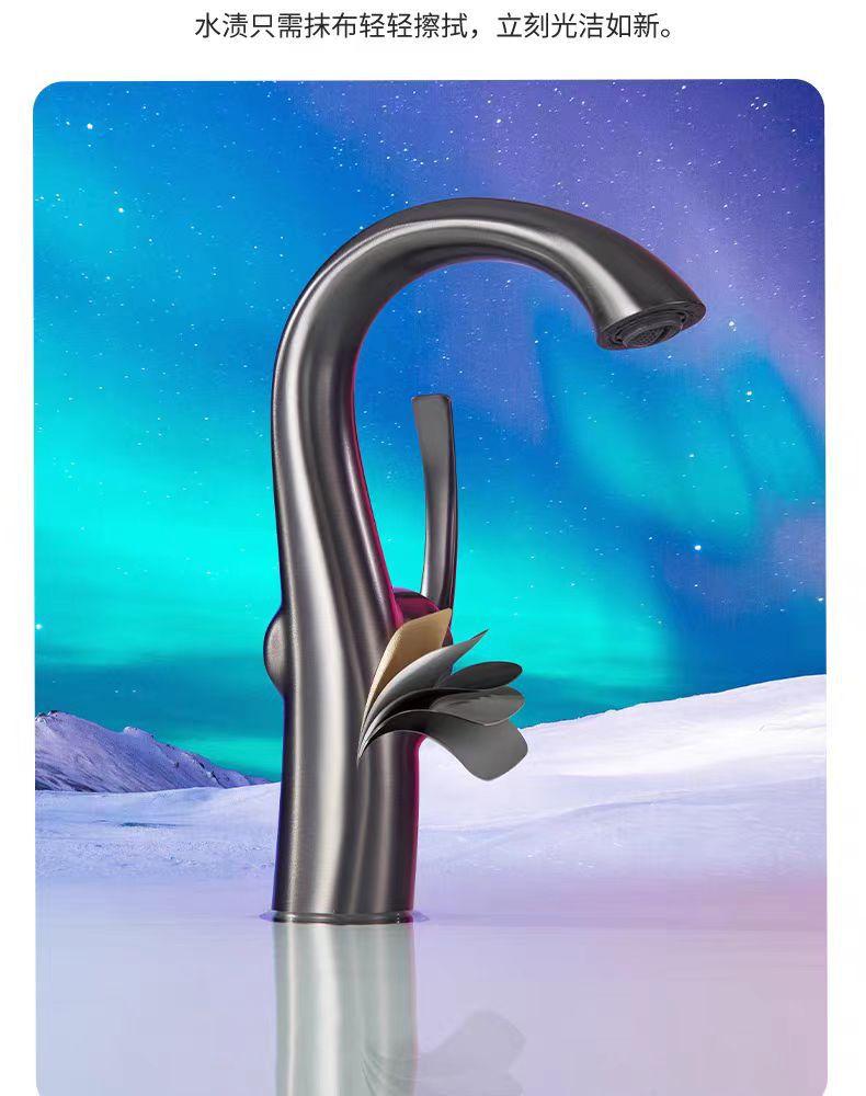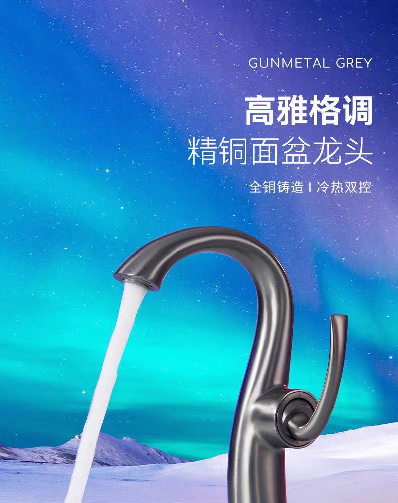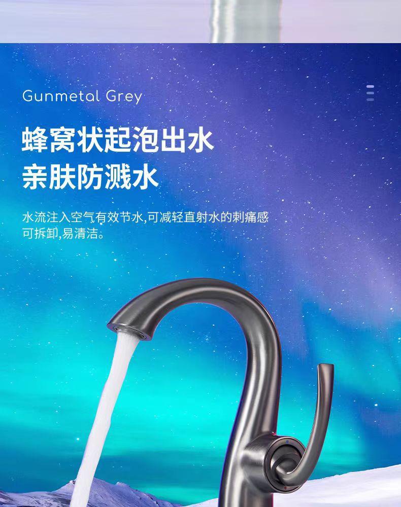 Lavabo de cobre caliente y frío a prueba de salpicaduras, pistola de agua de panal, cuello de cisne gris, nuevo grifo para lavabo de baño, hogar