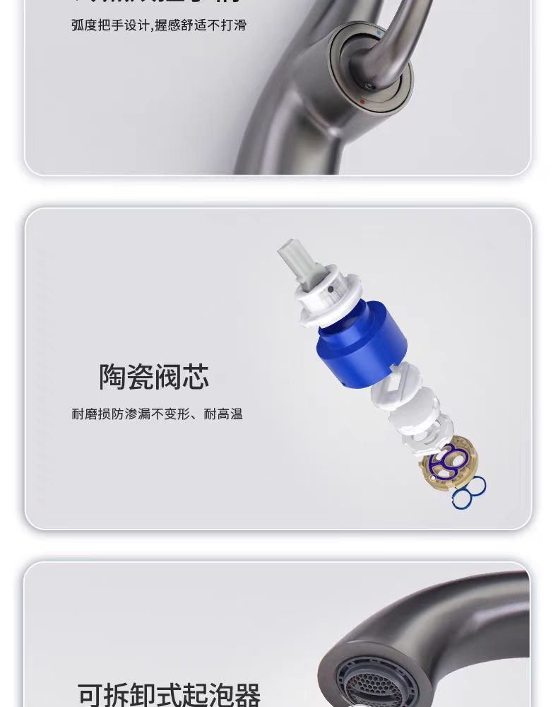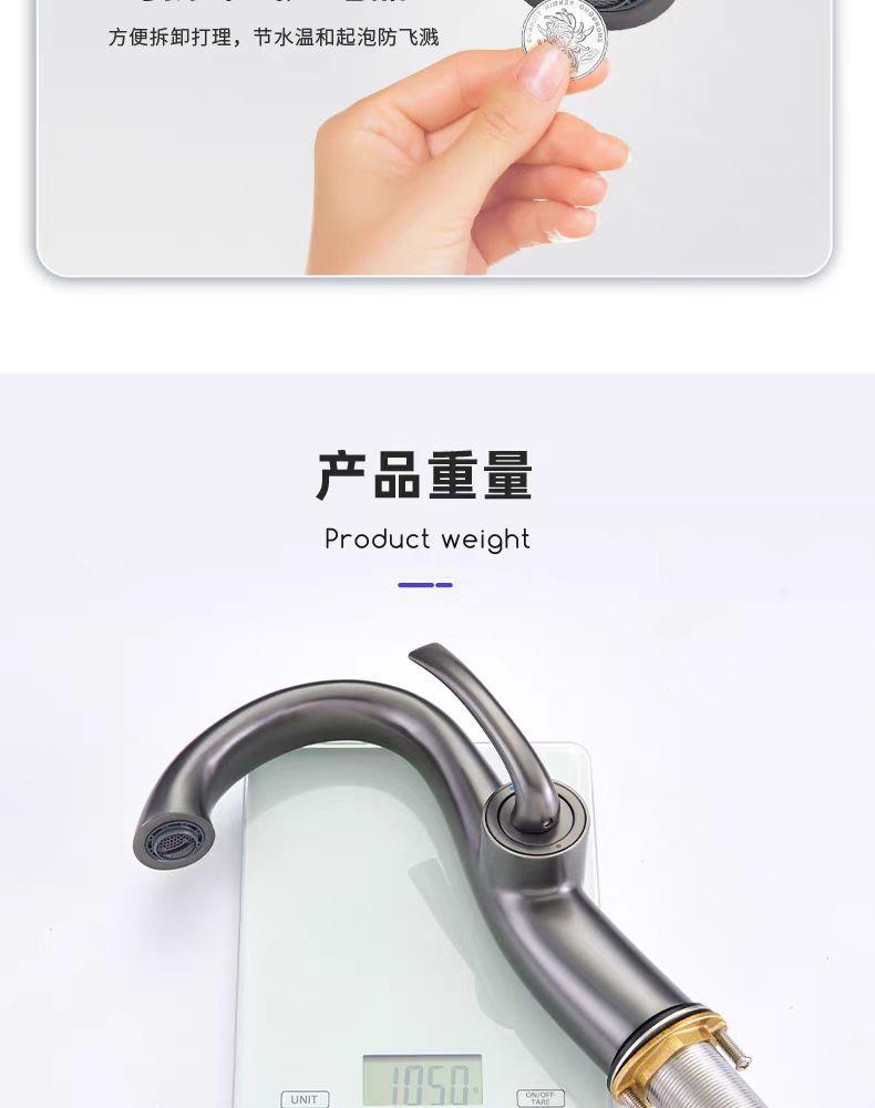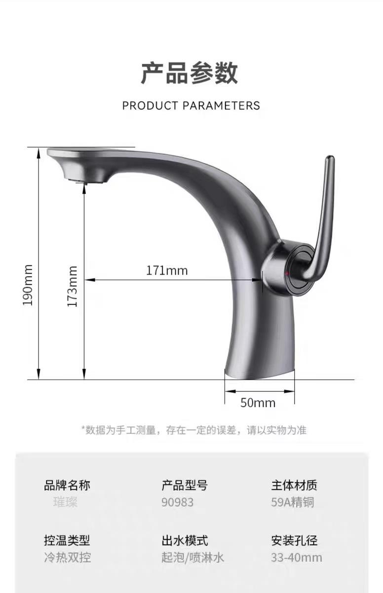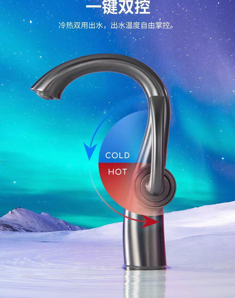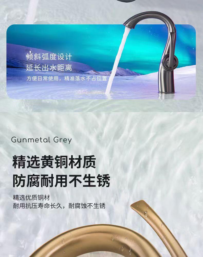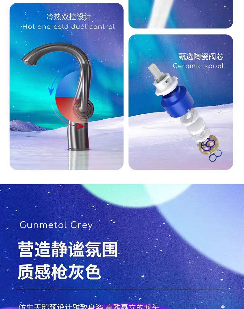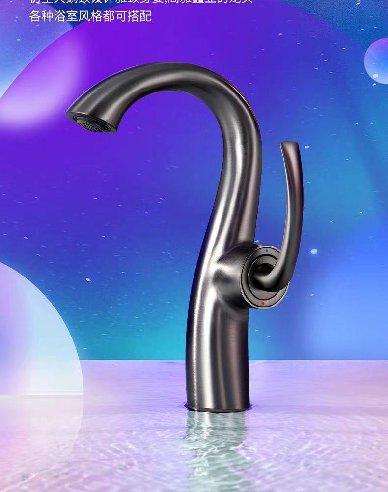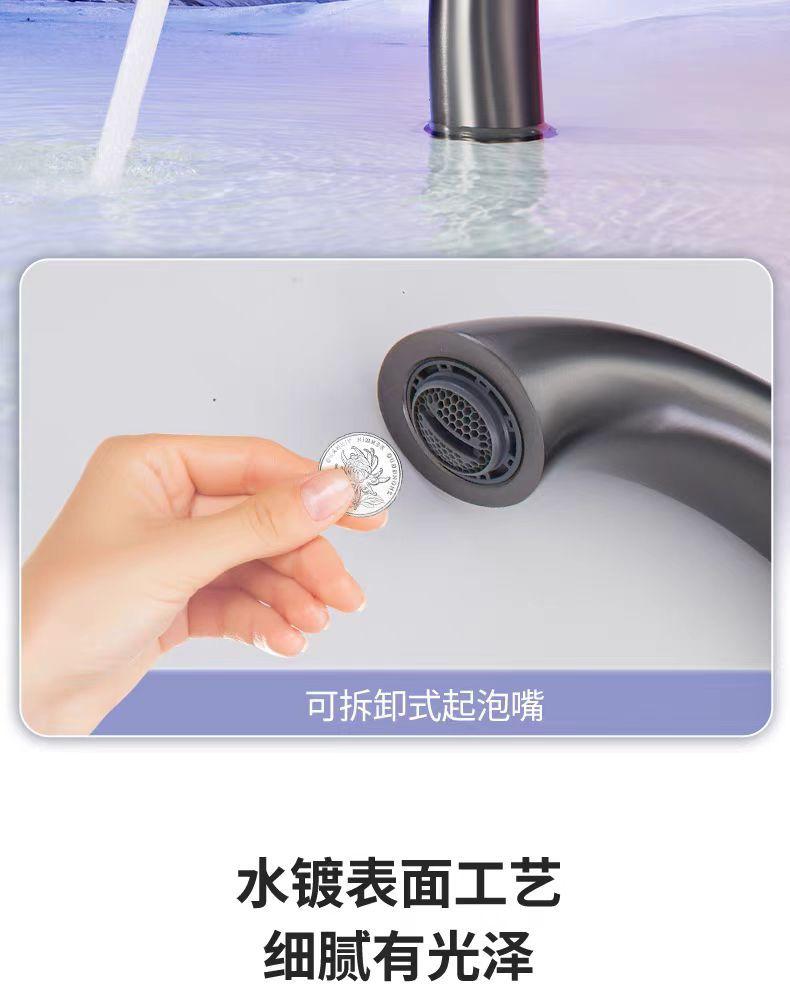 Lavabo de cobre caliente y frío a prueba de salpicaduras, pistola de agua de panal, cuello de cisne gris, nuevo grifo para lavabo de baño, hogar
