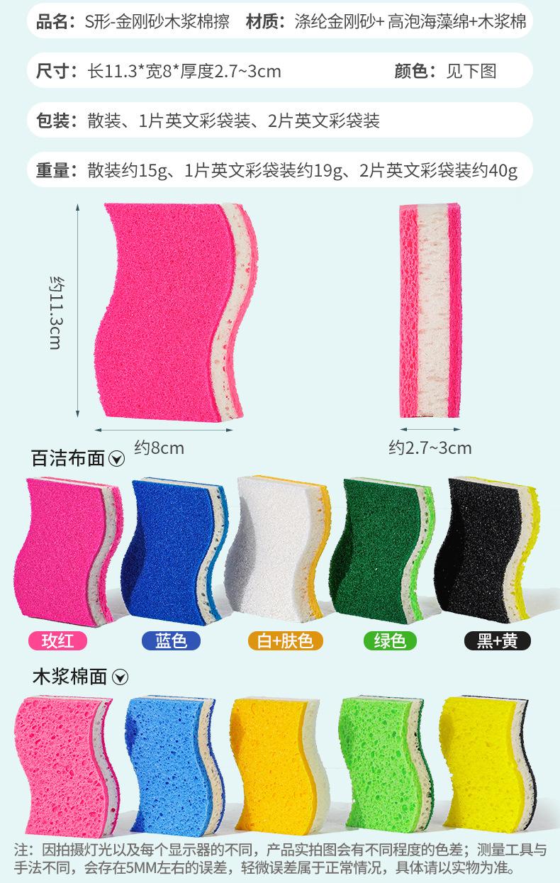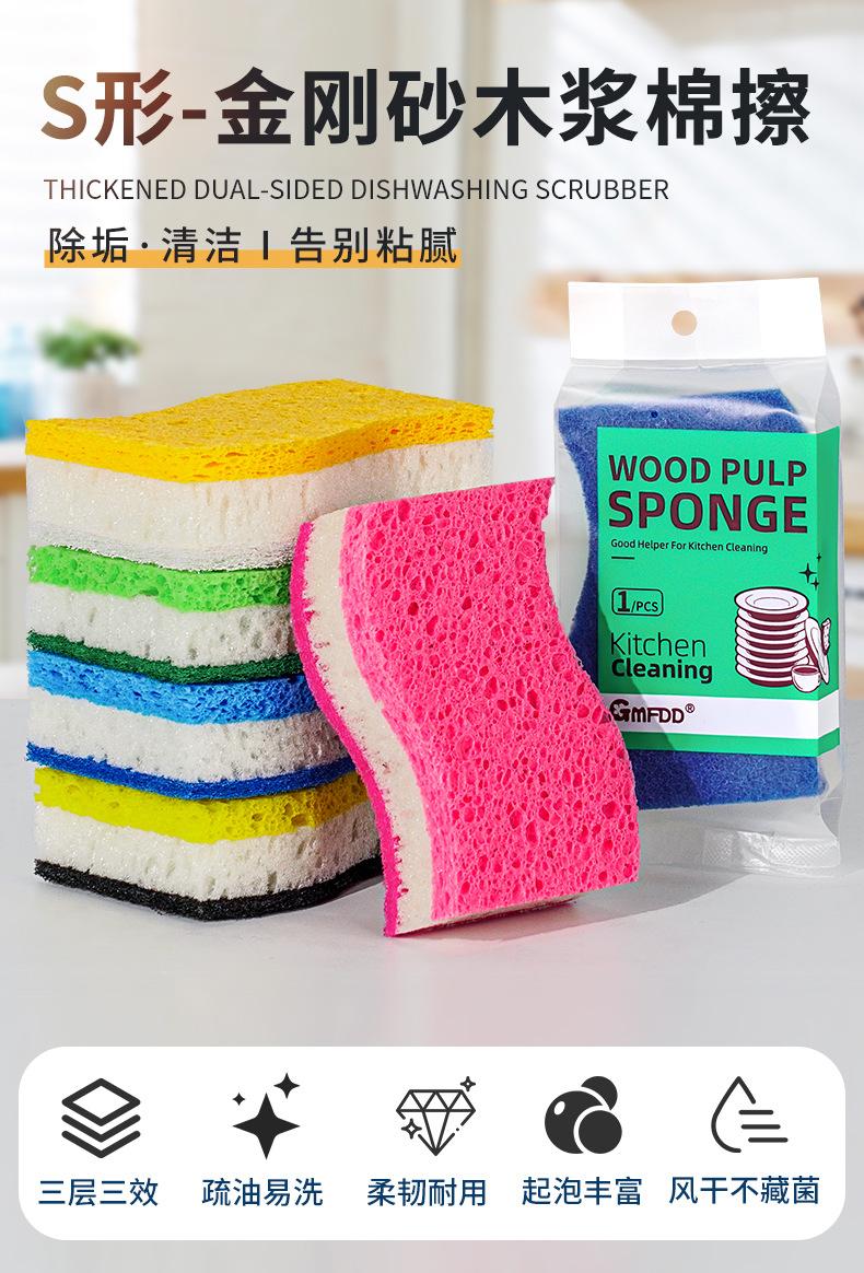 Estropajo de esmeril en forma de S, esponja de algodón y pulpa de madera, cepillo para fregar platos de cocina, fregado mágico, bloque de esponja de limpieza del hogar