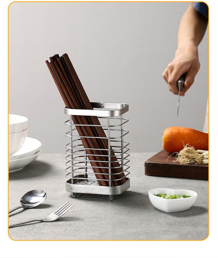 Acero Inoxidable 304 Cocina Jaula para Palillos Estante de Almacenamiento Montado en la Pared Cubo para Palillos Cuchara Estante de Almacenamiento para Vajilla Almacenamiento para el Hogar Beiqin