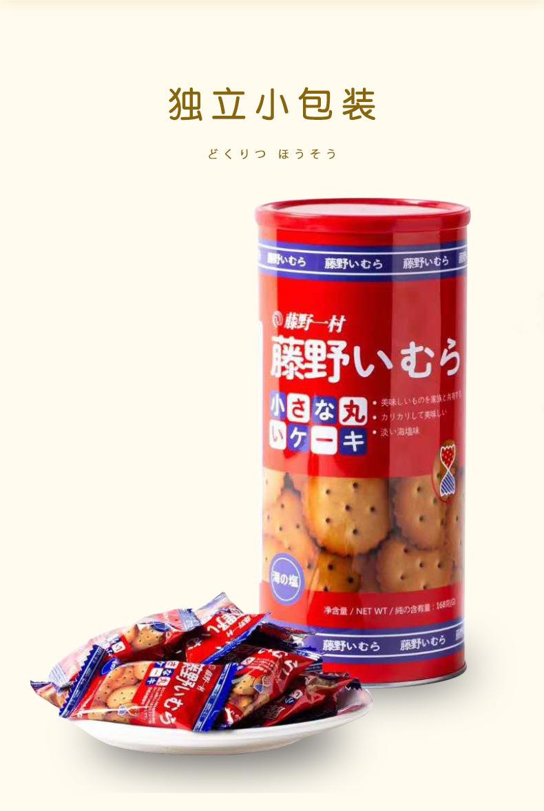 Nombre del producto: Fujino Ichimura celebridad de Internet galletas redondas pequeñas de sal marina japonesa enlatadas rojas sabor natural ligero salado leche al por mayor168g/lata, 12 latas por caja