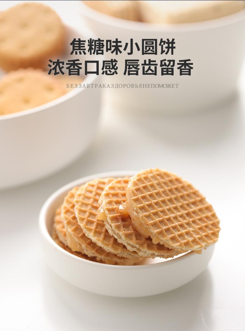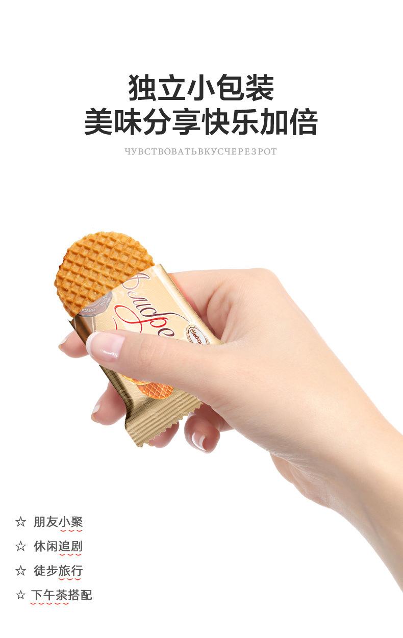 Nombre del producto: Akonte Galletas de dibujo importadas de Rusia waffles celebridad de Internet sándwich de leche condensada galletas redondas pequeñas snacks 408g/bolsa, 8 bolsas por caja