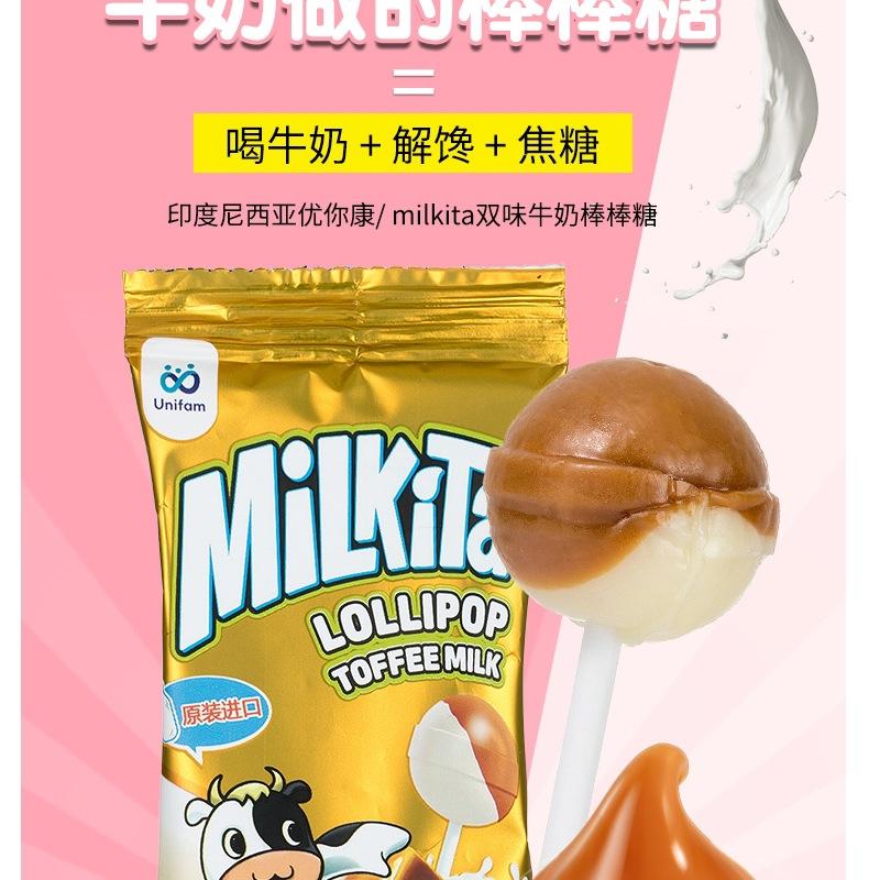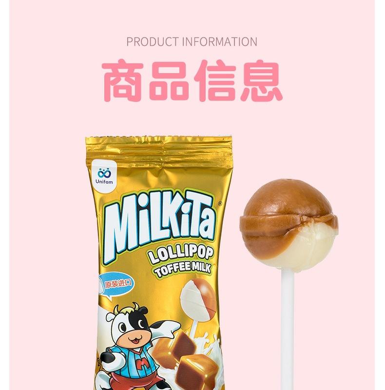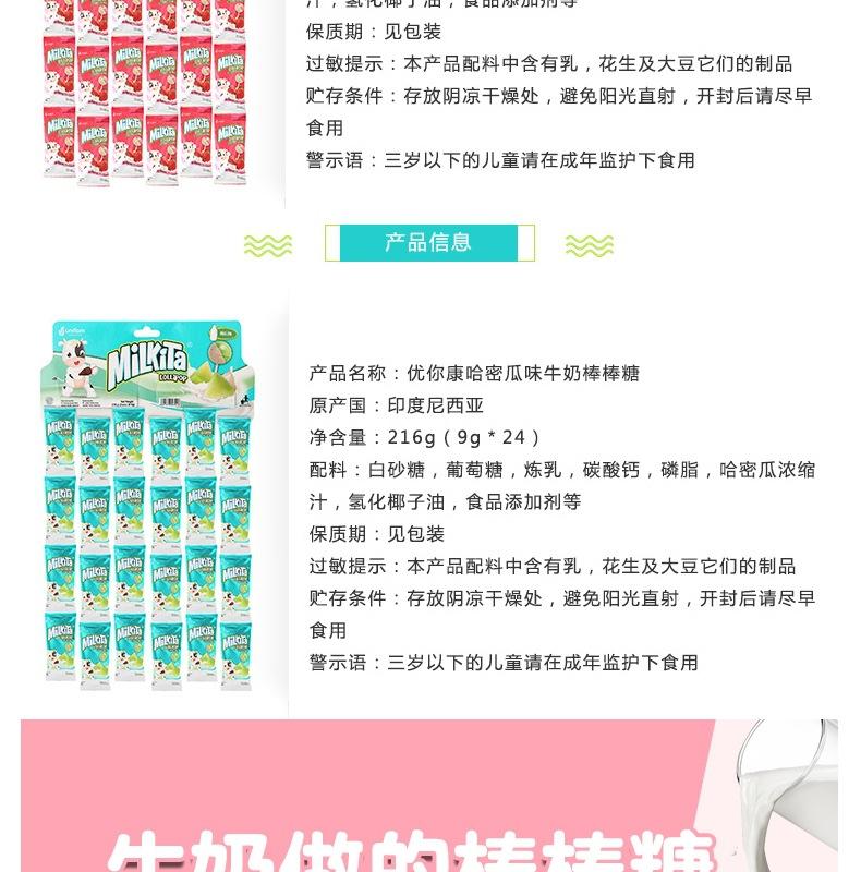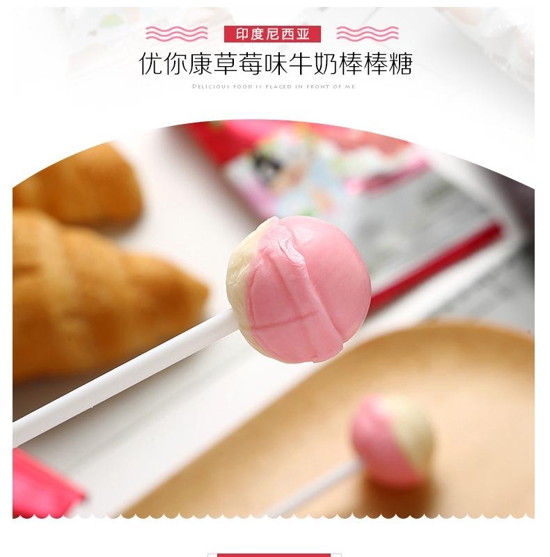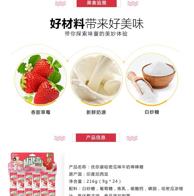 Nombre del producto: Snacks importados de Indonesia Milkita Younikang piruleta sabor fresa melón 9g * 24 dulces para niños 216g / bolsa, 6 bolsas por caja