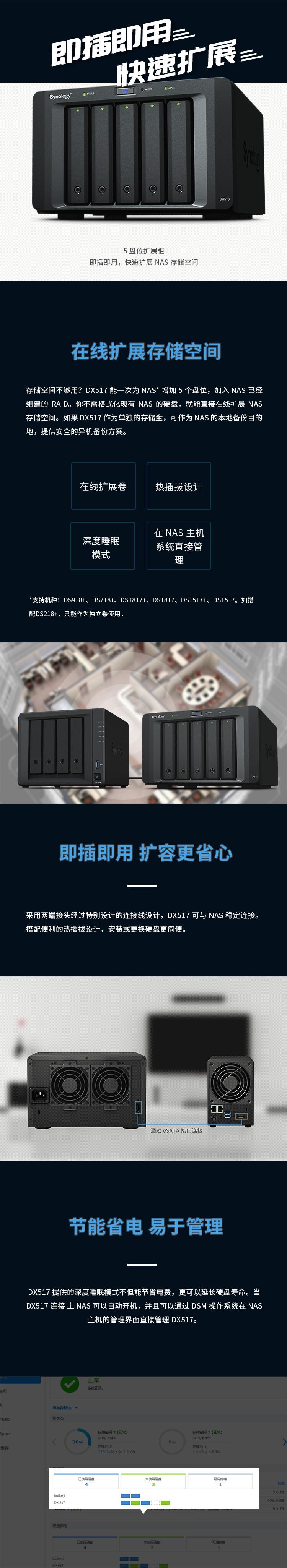 Dispositivo de expansión de servidor de almacenamiento en red NAS de 5 discos Qunhui DX517 (sin disco duro interno)