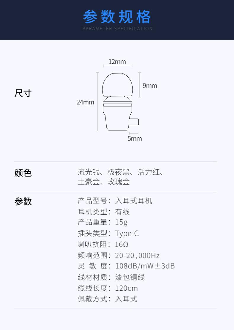 Los Audífonos Digitales Tipo C Son Adecuados para Oppovivo Xiaomi Huawei Audífonos Metálicos In-Ear con Cable Stock Listo de Fábrica