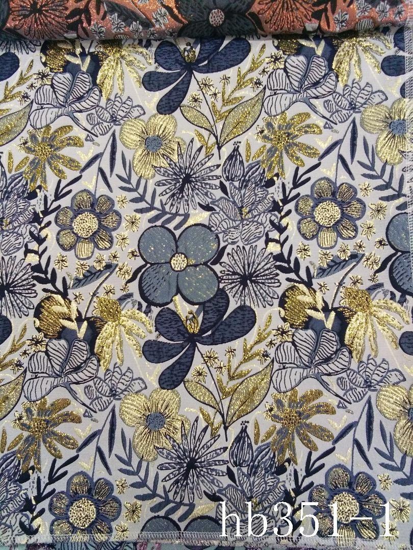 Tela jacquard de seda dorada tejida con flores estilo pastoral europeo y americano, elegante y retro, para vestidos, zapatos y bolsos.