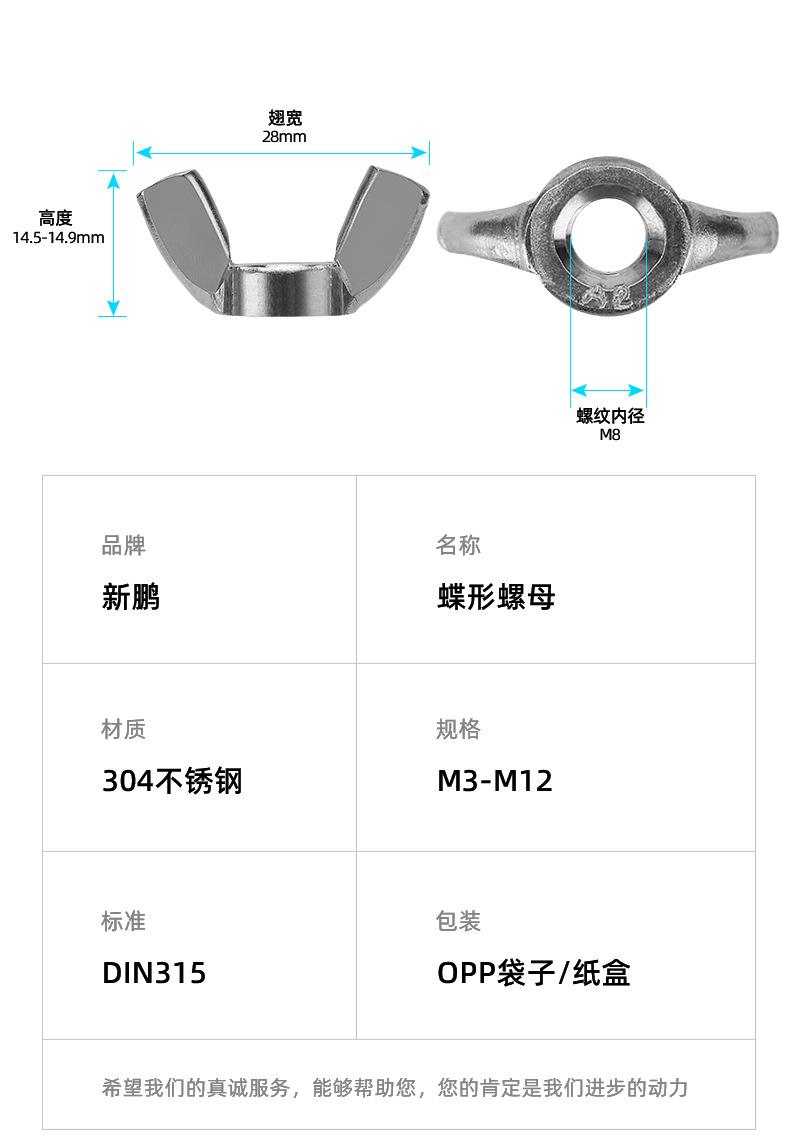 Tuerca de mariposa de acero inoxidable 304, tuerca de mariposa de giro manual, tuerca de cuerno, tapa de tornillo de lingote en forma de disco M3/M6/M8