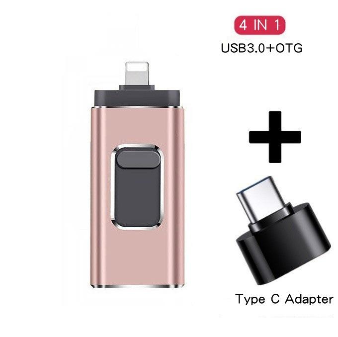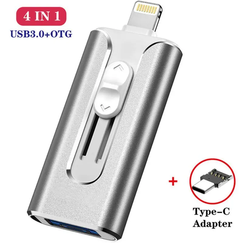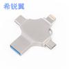 Venta al por mayor transfronteriza Cuatro en uno Unidad flash USB para teléfono móvil Pingguo Tipo-C de metal Unidad flash USB Regalo Unidad flash USB de gran capacidad 1Tb
