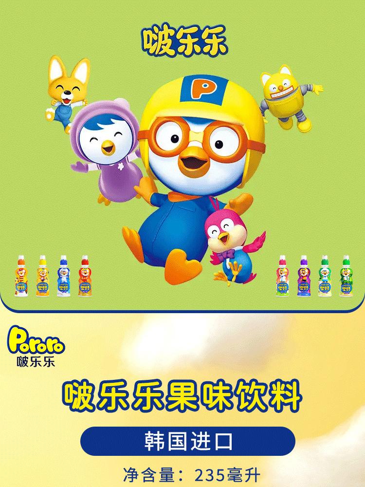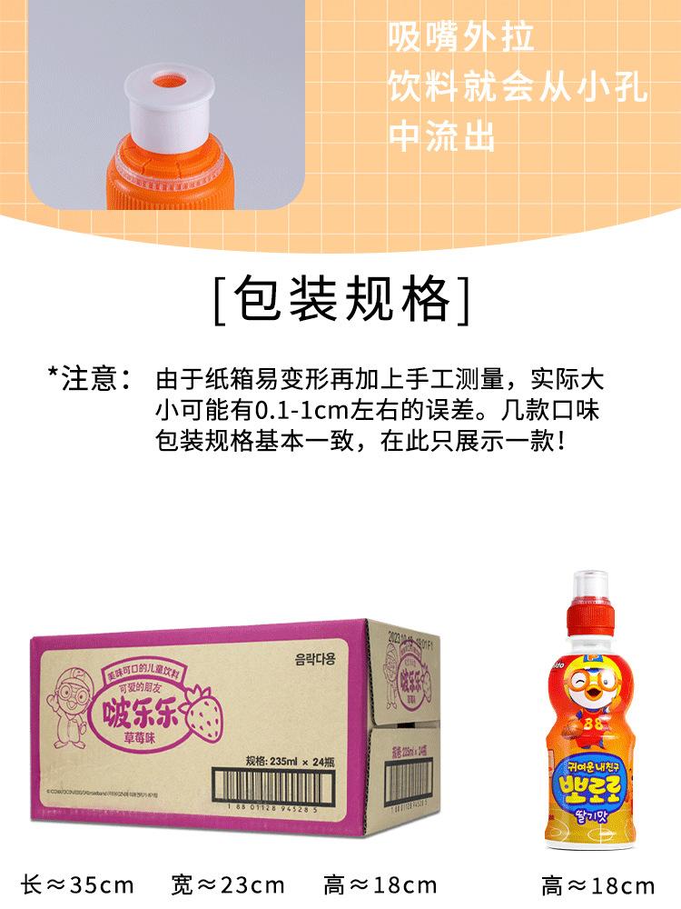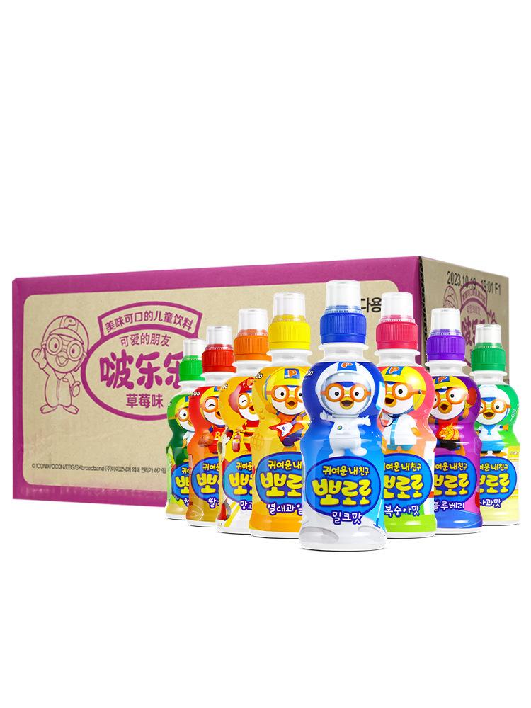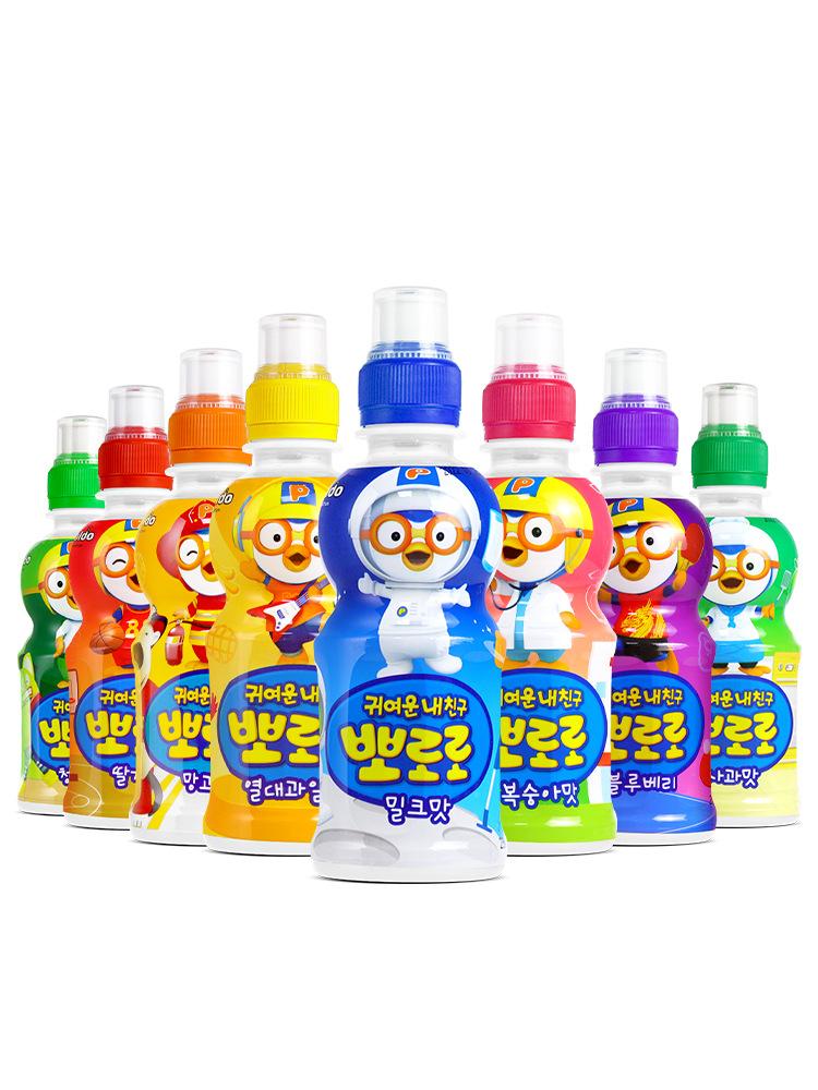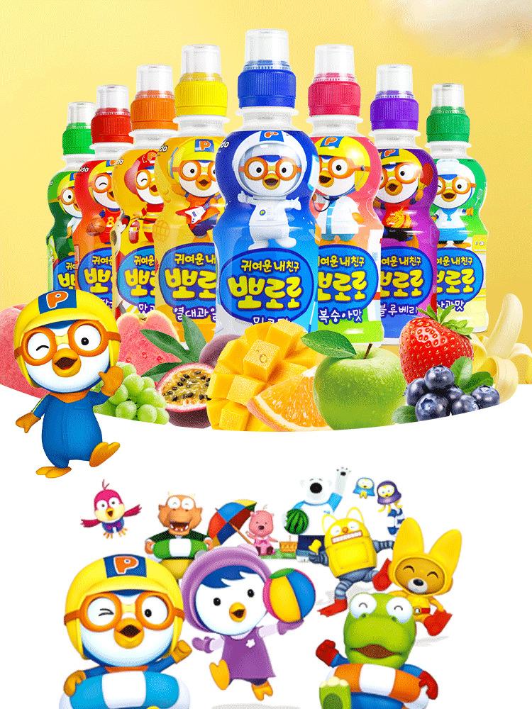 Bebida Infantil Pororo 235ml*24 Botellas Bebida con Sabor a Frutas Sabor Variado Importada de Corea Fecha Nueva