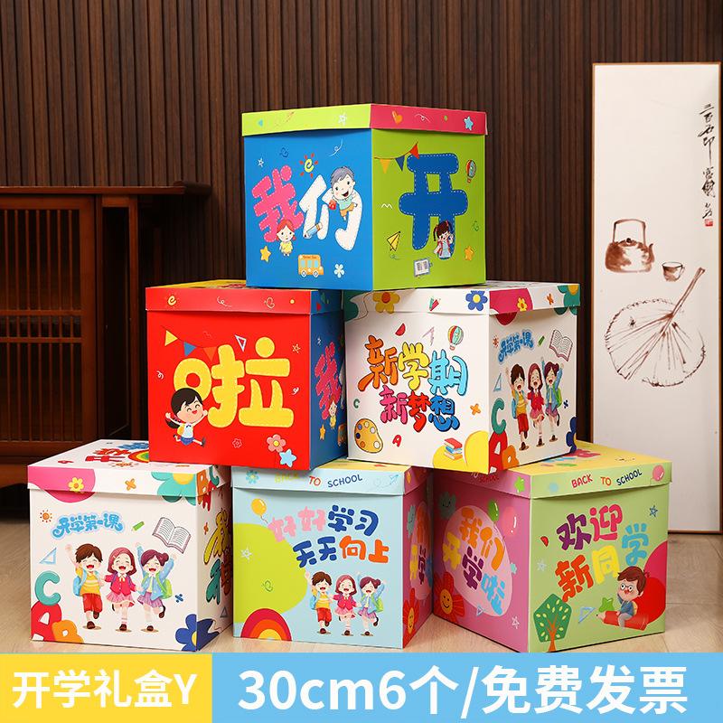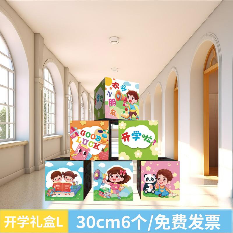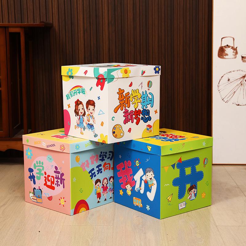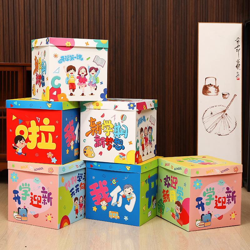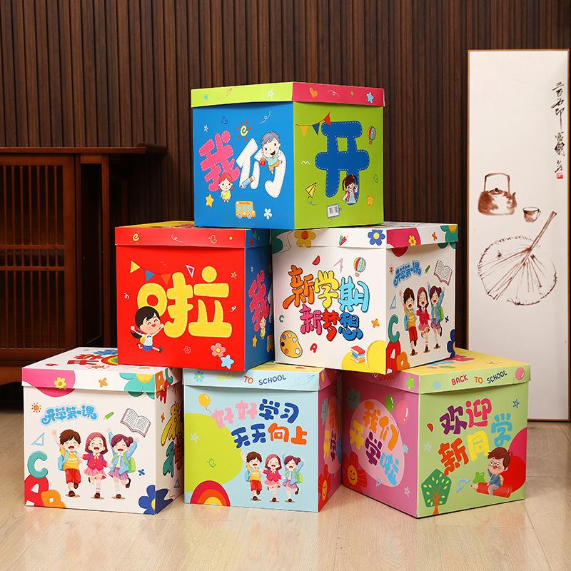 En la temporada de apertura, se apilan cajas para decorar la escena y decorar la atmósfera del aula en el jardín de infantes.