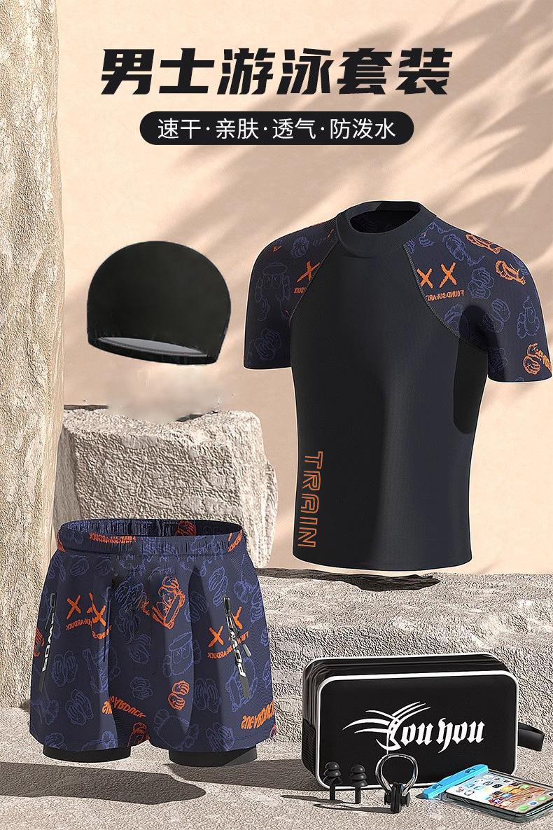 Traje de Baño para Hombre Nuevo Moda Talla Grande Bóxer Falso de Dos Piezas Antiembarazoso Estampado Deportivo Natación