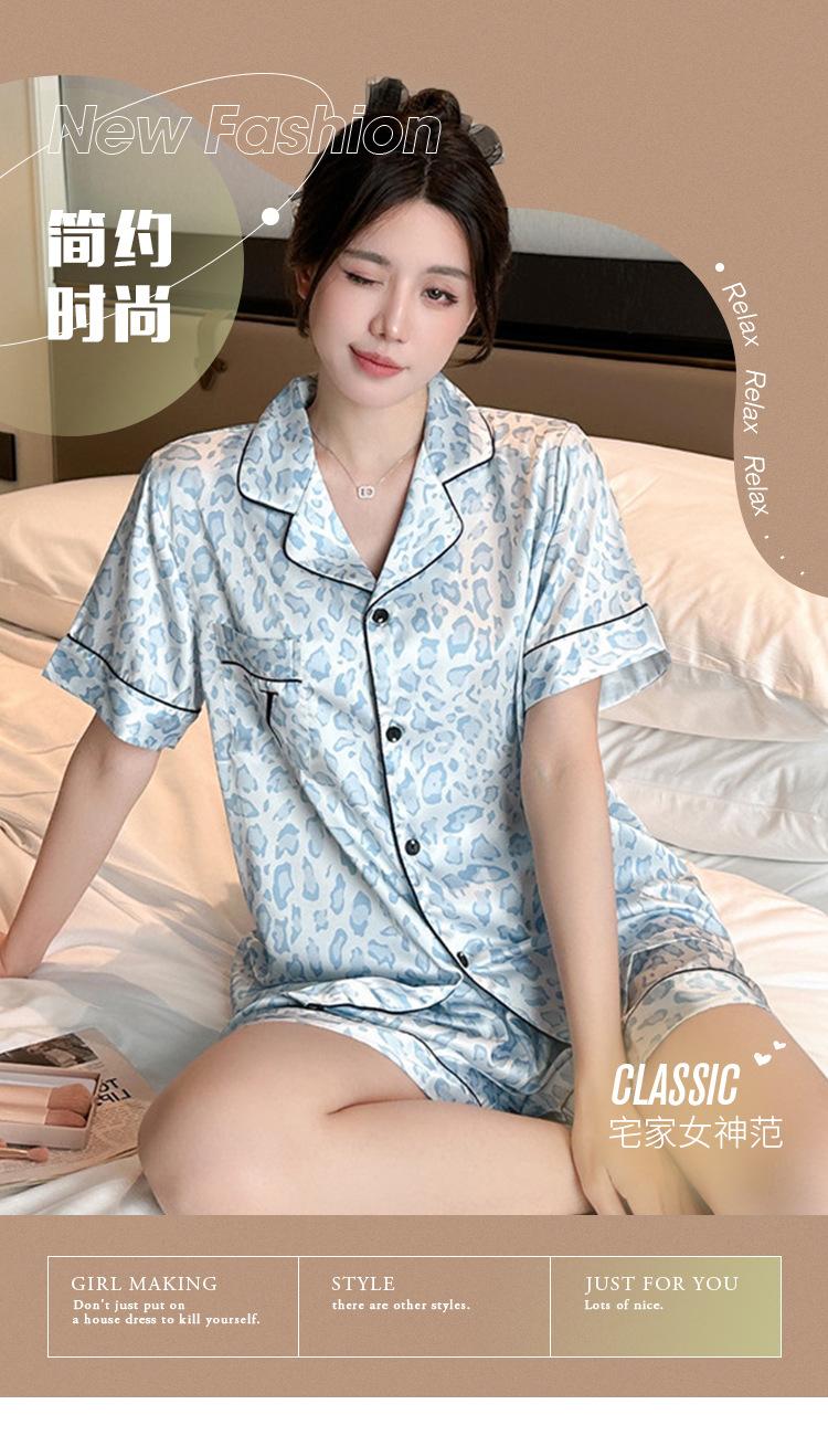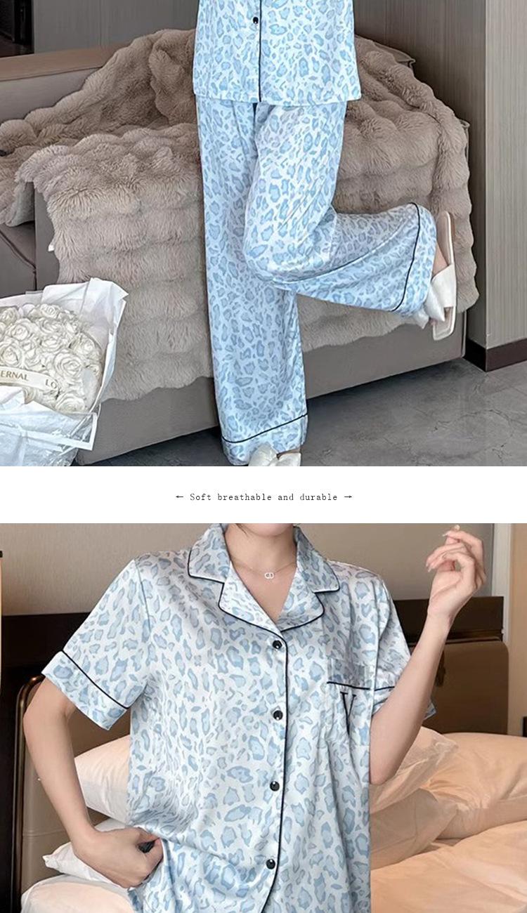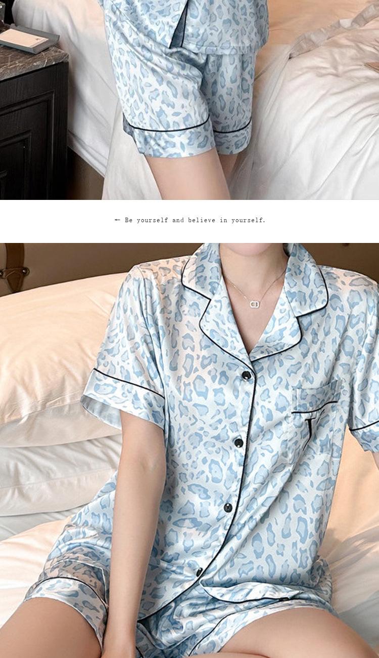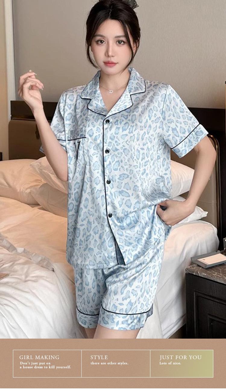 Verano transfronterizo rojo de internet con estampado de leopardo azul manga corta pantalones cortos pijama de tres piezas ropa de casa venta al por mayor