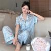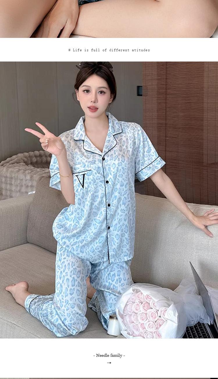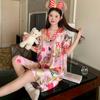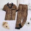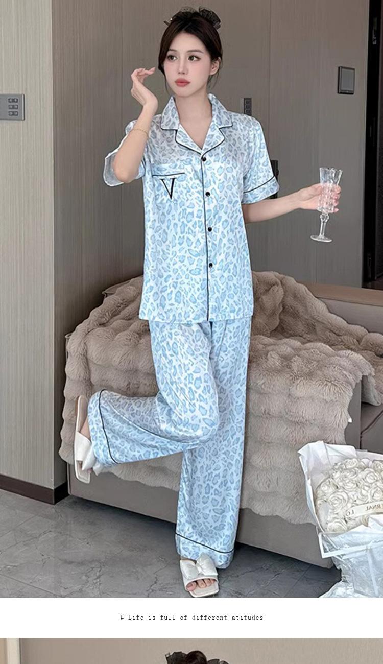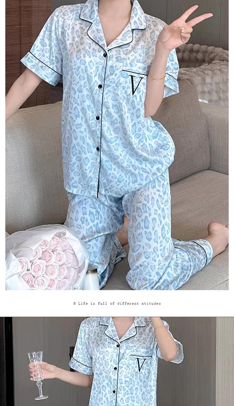 Verano transfronterizo rojo de internet con estampado de leopardo azul manga corta pantalones cortos pijama de tres piezas ropa de casa venta al por mayor