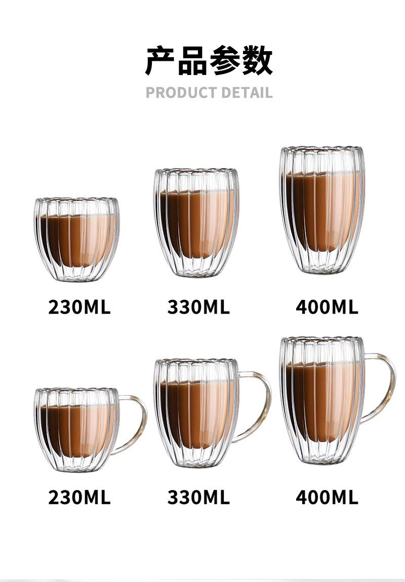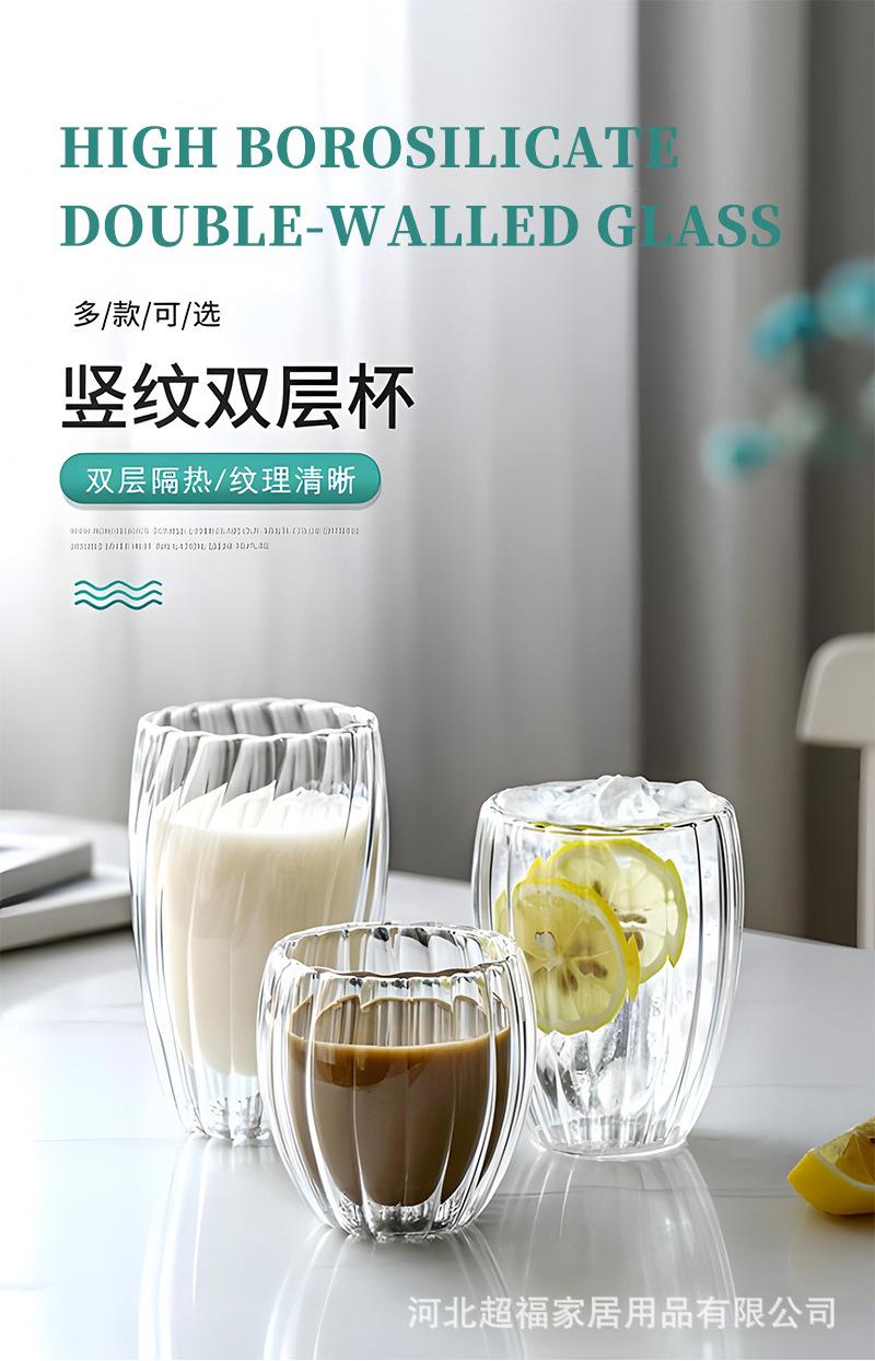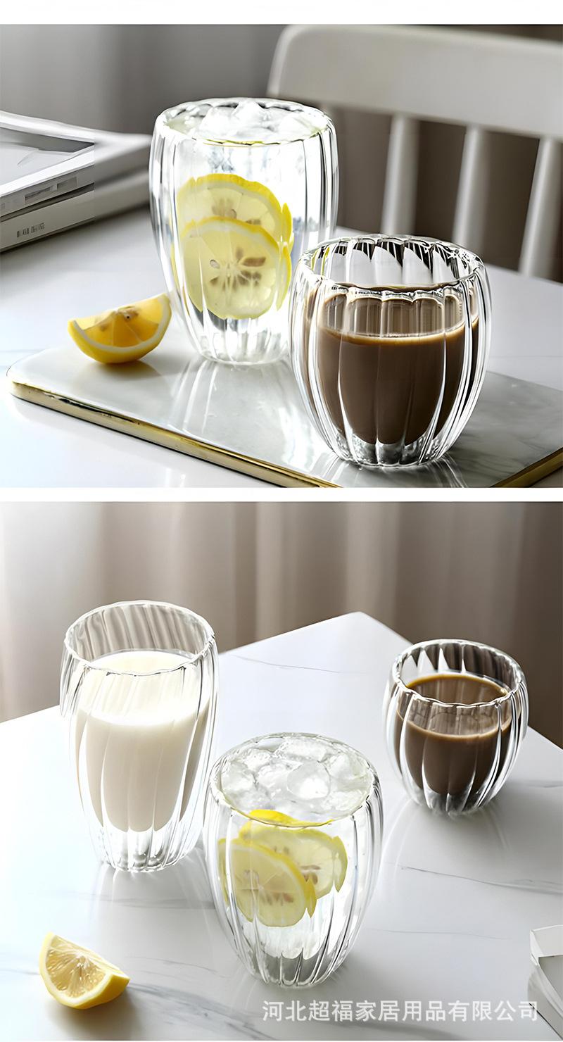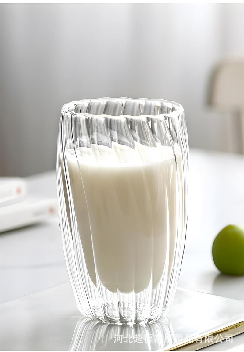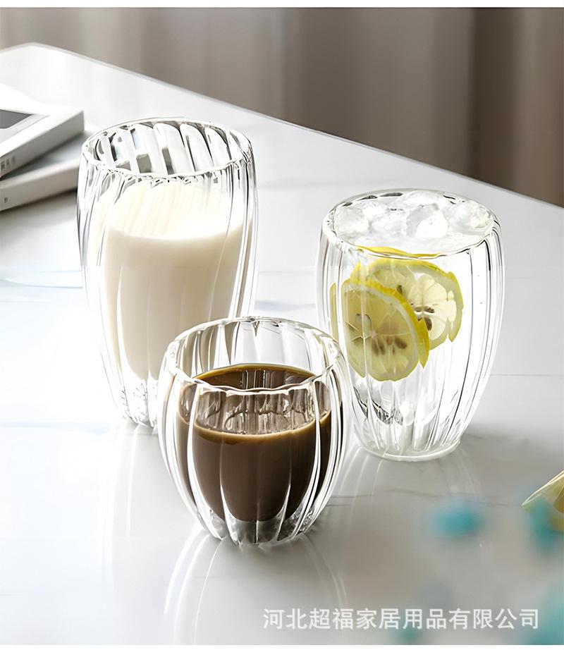Taza de café de vidrio de borosilicato alto con rayas de doble capa en forma de huevo, vidrio transparente con aislamiento de doble capa