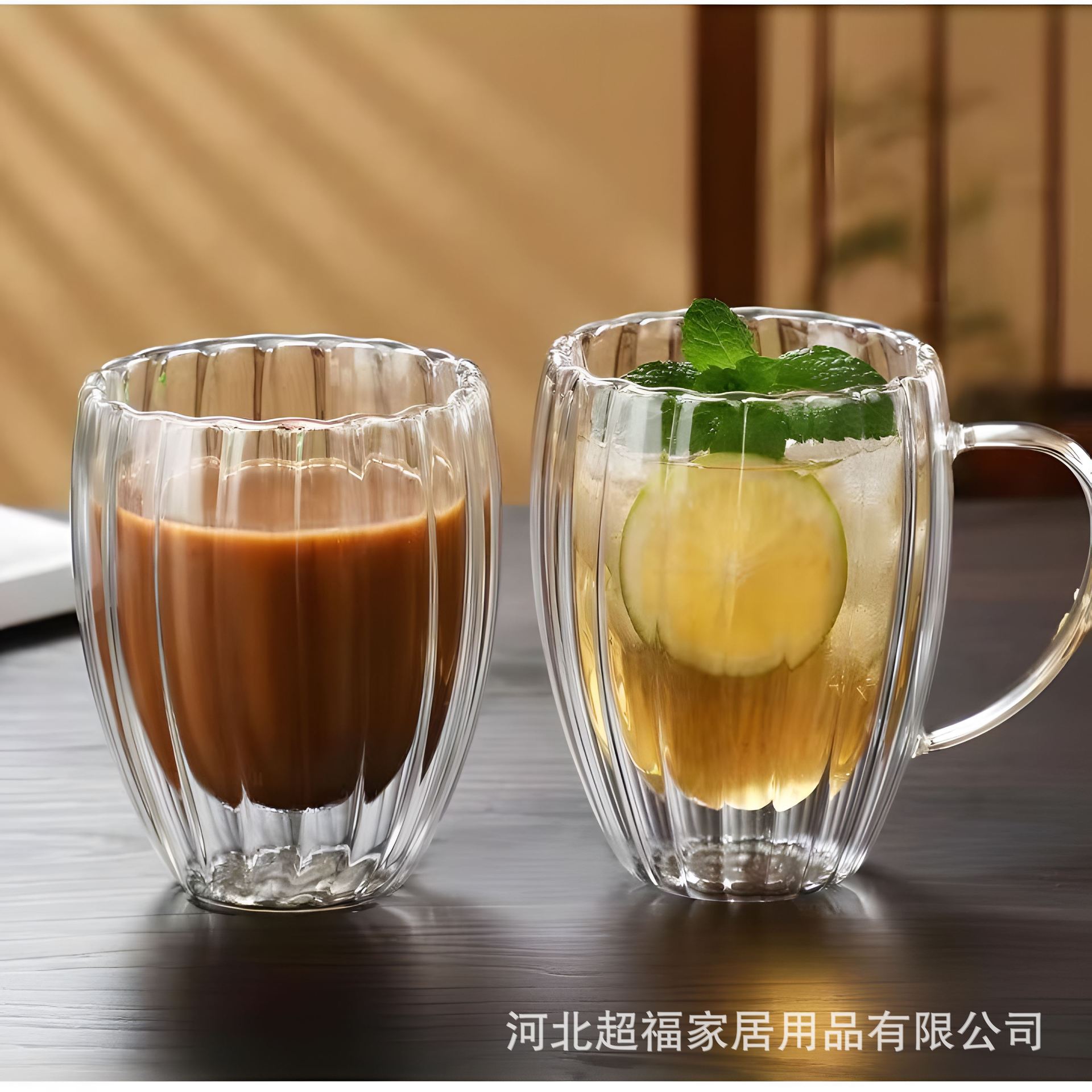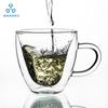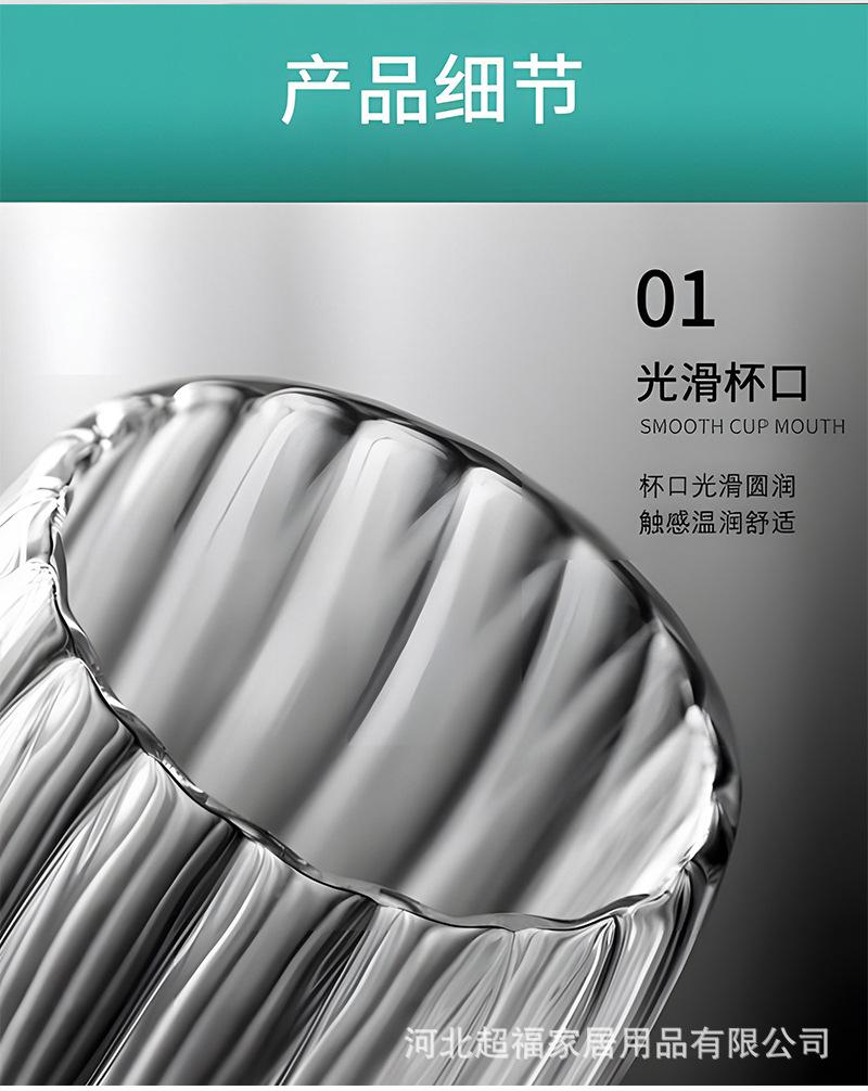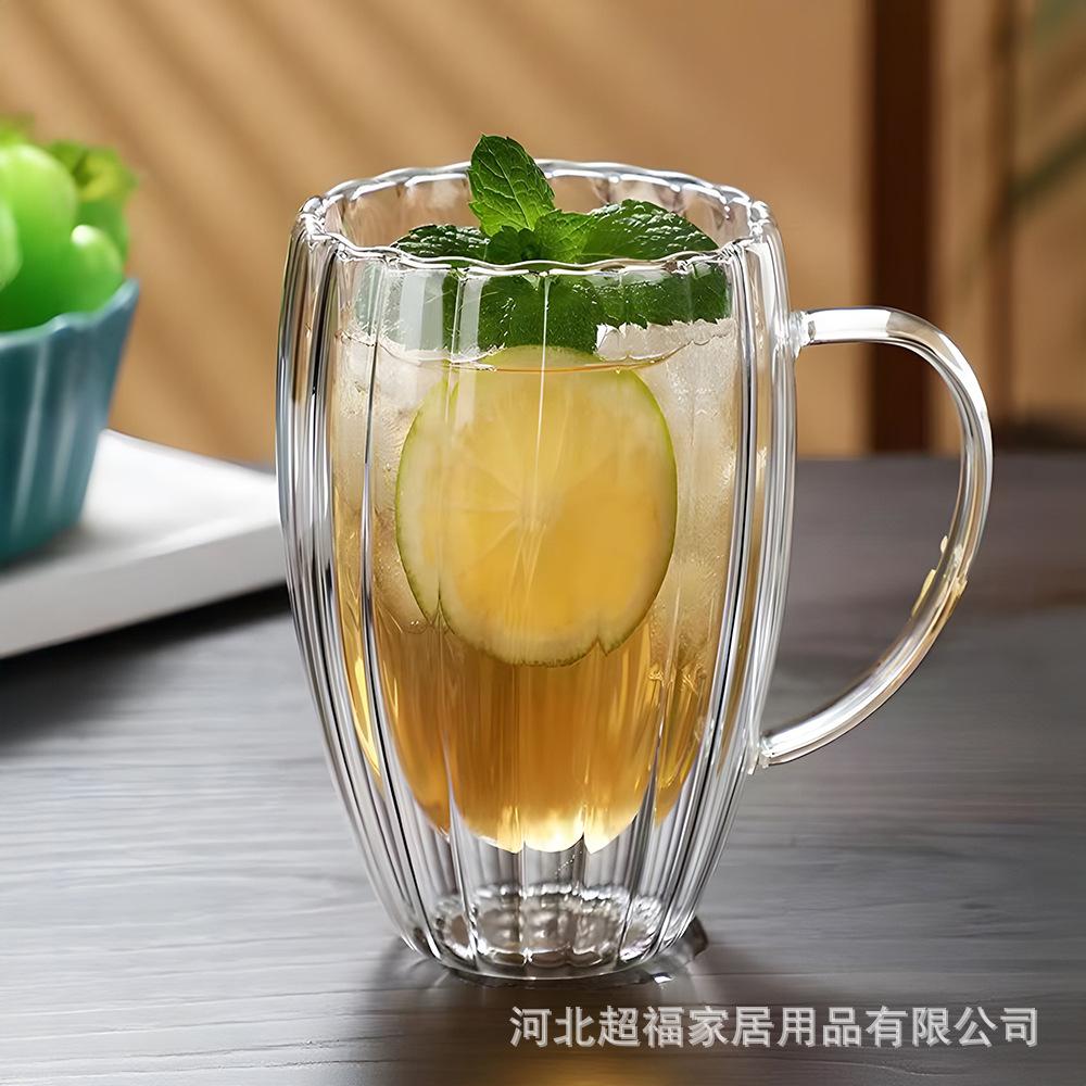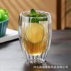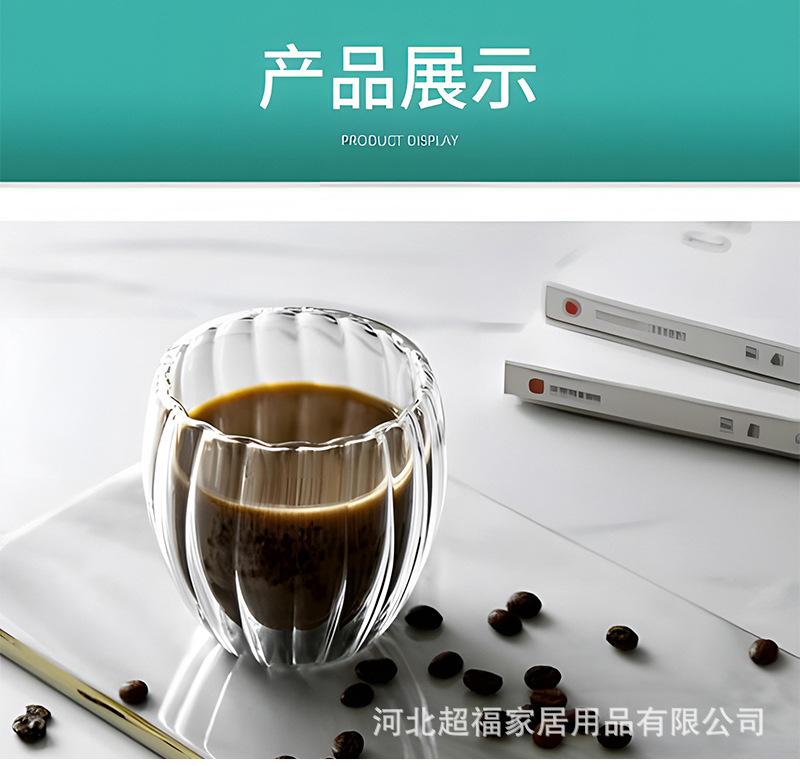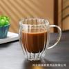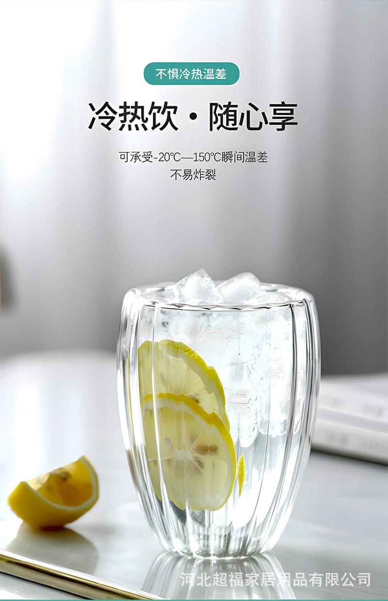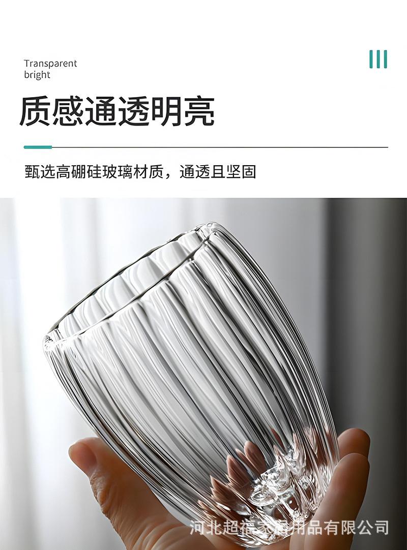 Taza de café de vidrio de borosilicato alto con rayas de doble capa en forma de huevo, vidrio transparente con aislamiento de doble capa